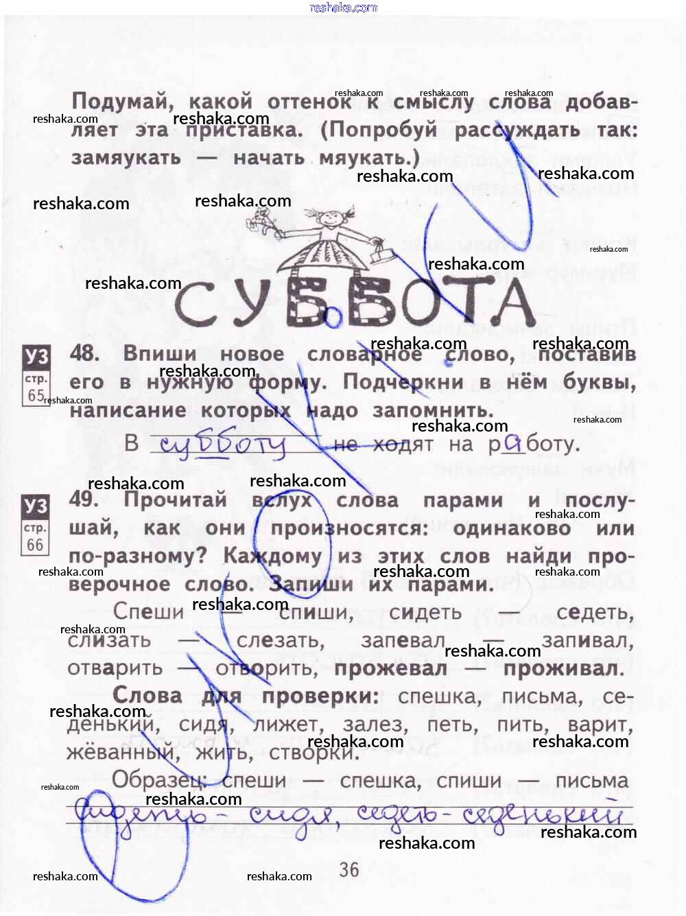 Решака - онлайн ответы Русский язык Байкова, Малаховская за 2 класс Тетрадь для самостоятельной работы ФГОС 2017 - 36
