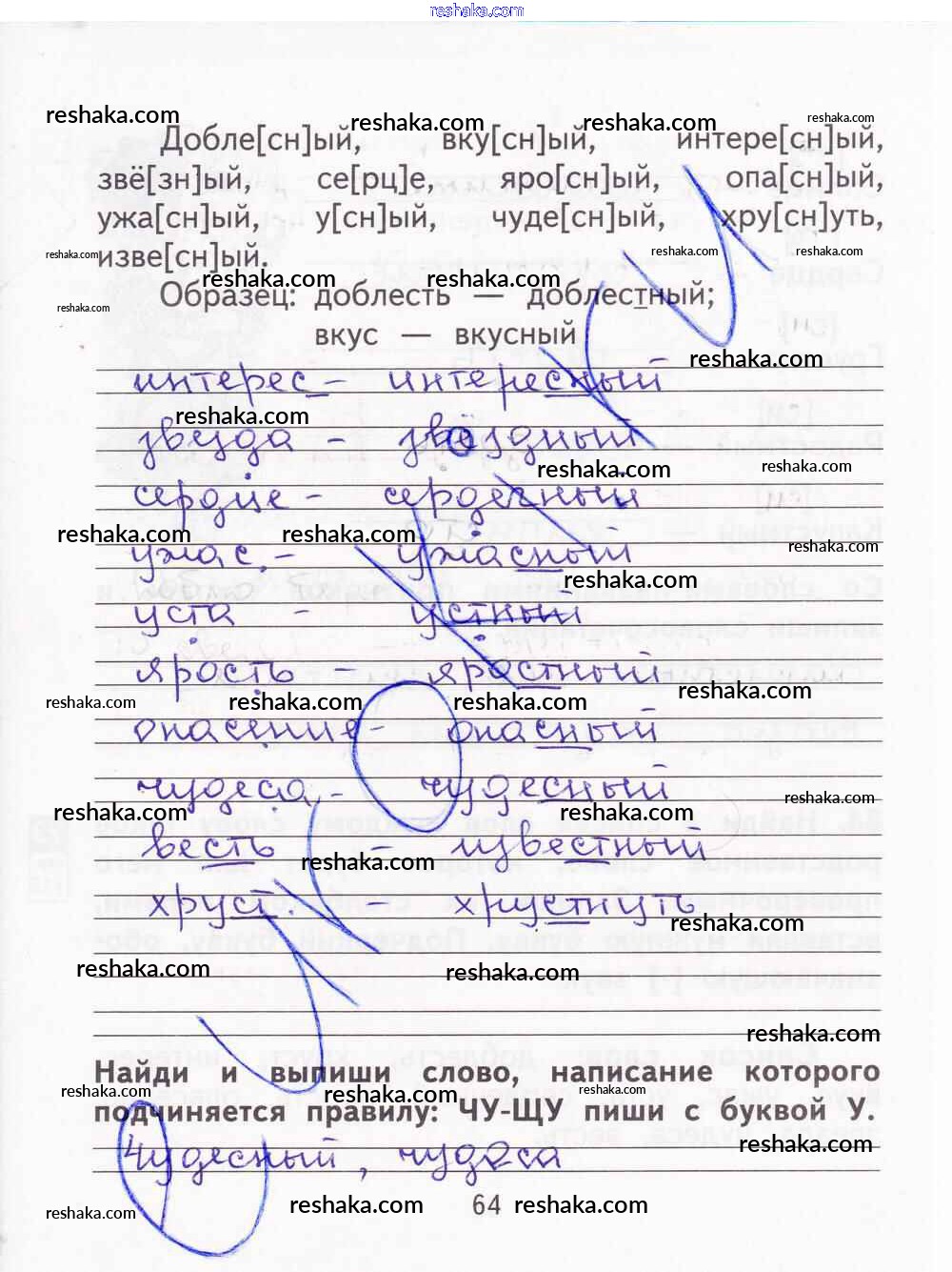 Решака - онлайн ответы Русский язык Байкова, Малаховская за 2 класс Тетрадь для самостоятельной работы ФГОС 2017 - 64