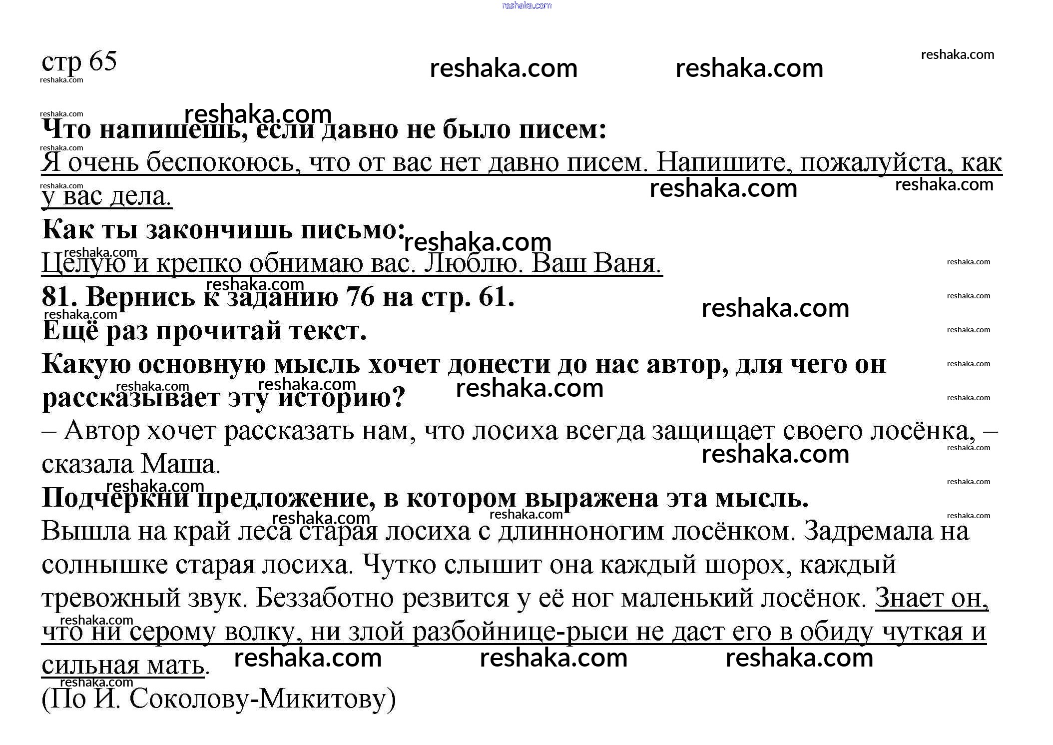 Решака - онлайн ответы Русский язык Байкова, Малаховская за 2 класс Тетрадь для самостоятельной работы ФГОС 2017 - 65