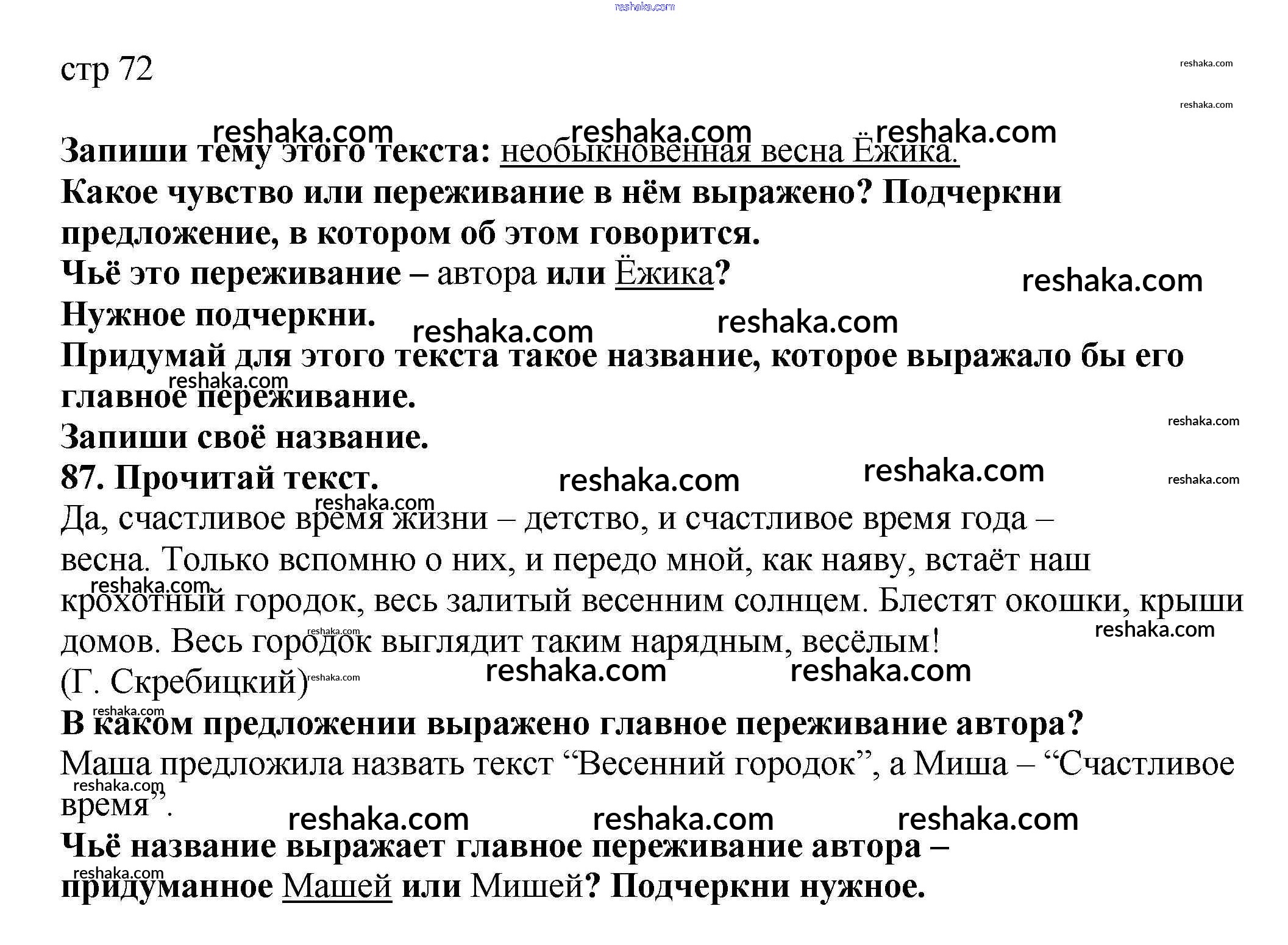 Решака - онлайн ответы Русский язык Байкова, Малаховская за 2 класс Тетрадь для самостоятельной работы ФГОС 2017 - 72