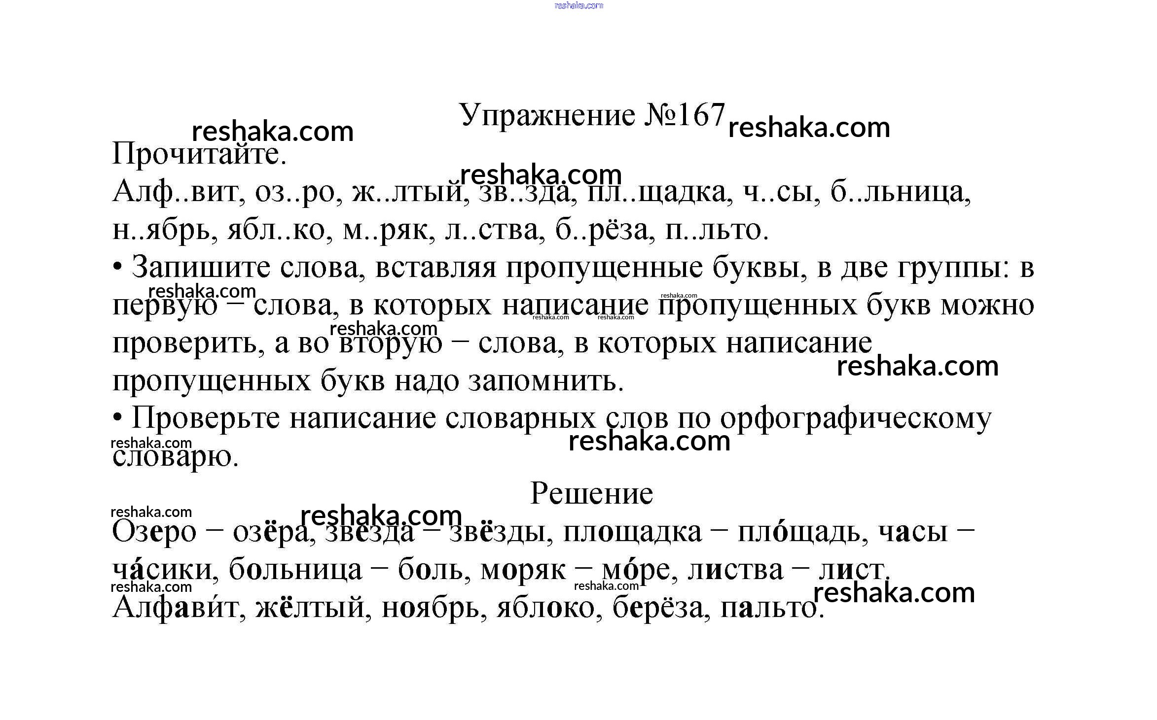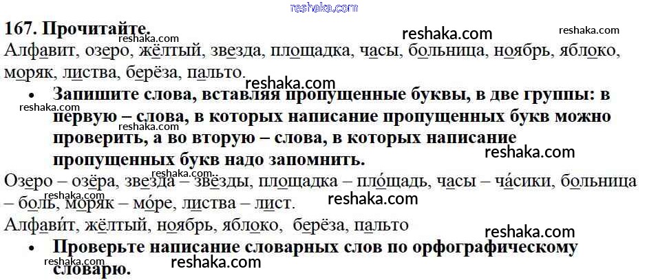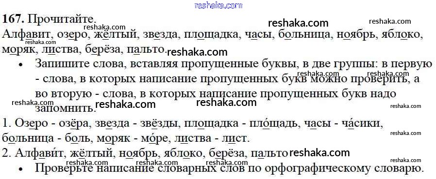 Решака - онлайн ответы Русский язык Канакина, Горецкий за 2 класс Учебник ФГОС 2013 - 167