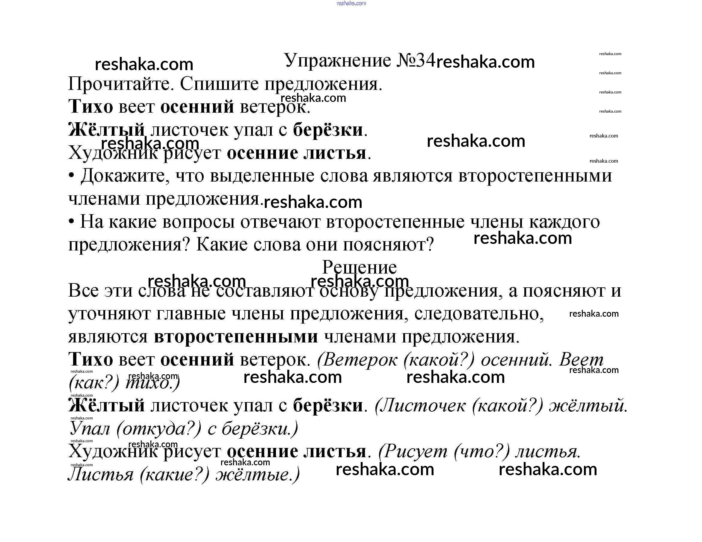 Решака - онлайн ответы Русский язык Канакина, Горецкий за 2 класс Учебник ФГОС 2013 - 34