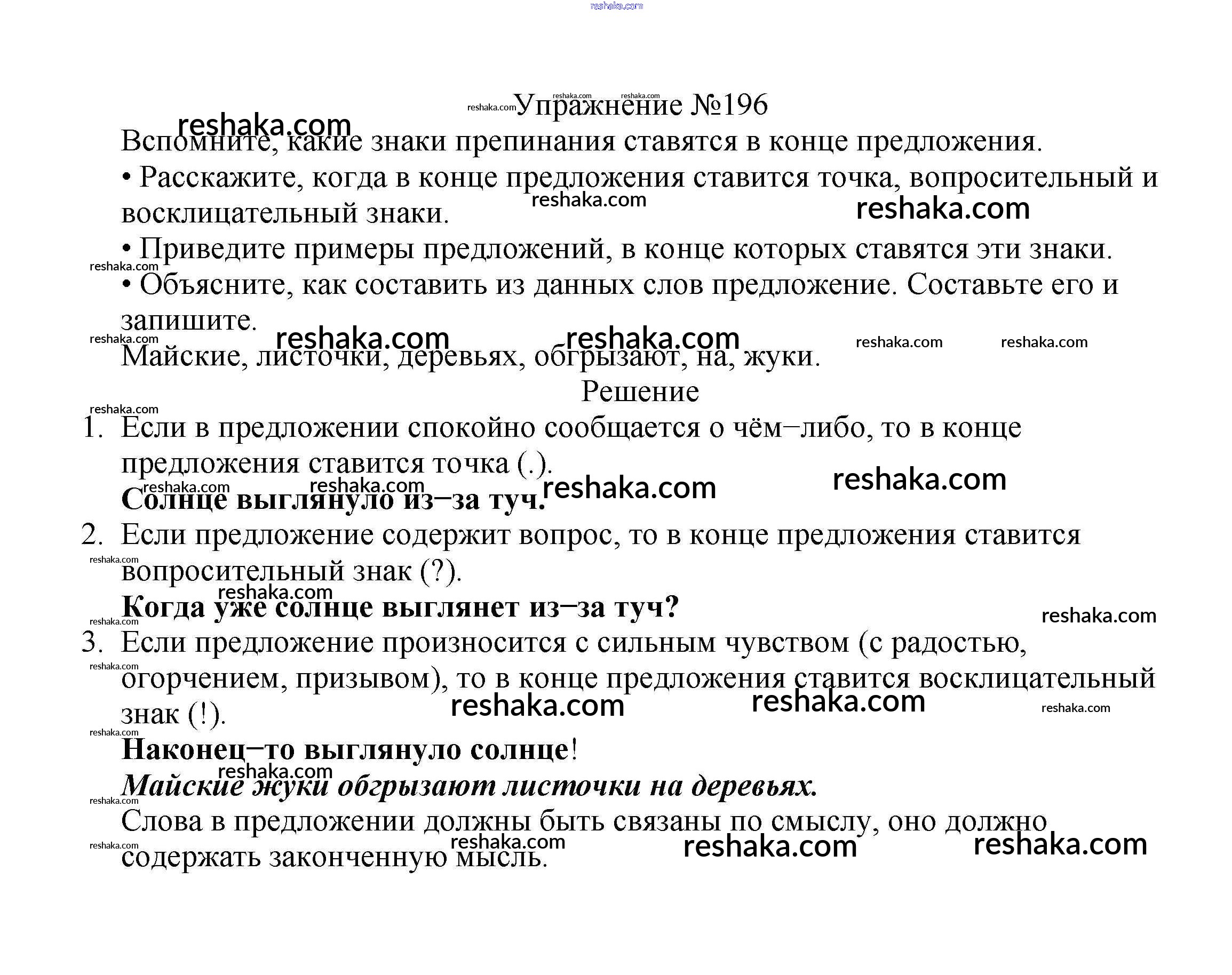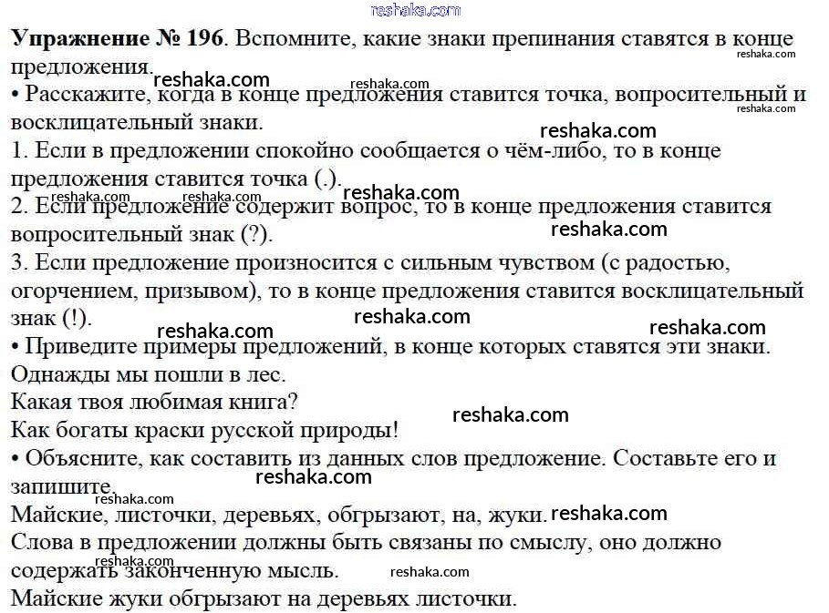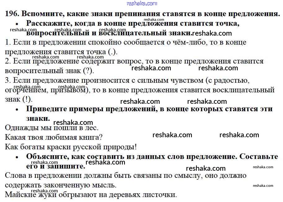 Решака - онлайн ответы Русский язык Канакина, Горецкий за 2 класс Учебник ФГОС 2013 - 196