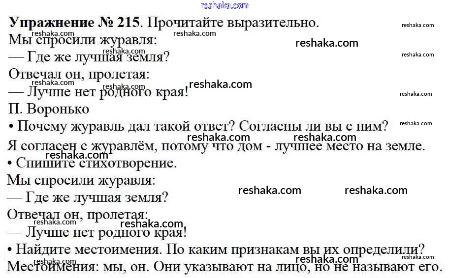 Решака - онлайн ответы Русский язык Канакина, Горецкий за 2 класс Учебник ФГОС 2013 - 215