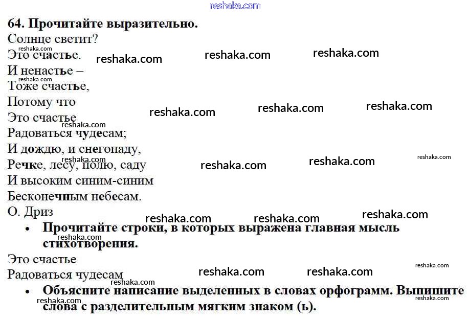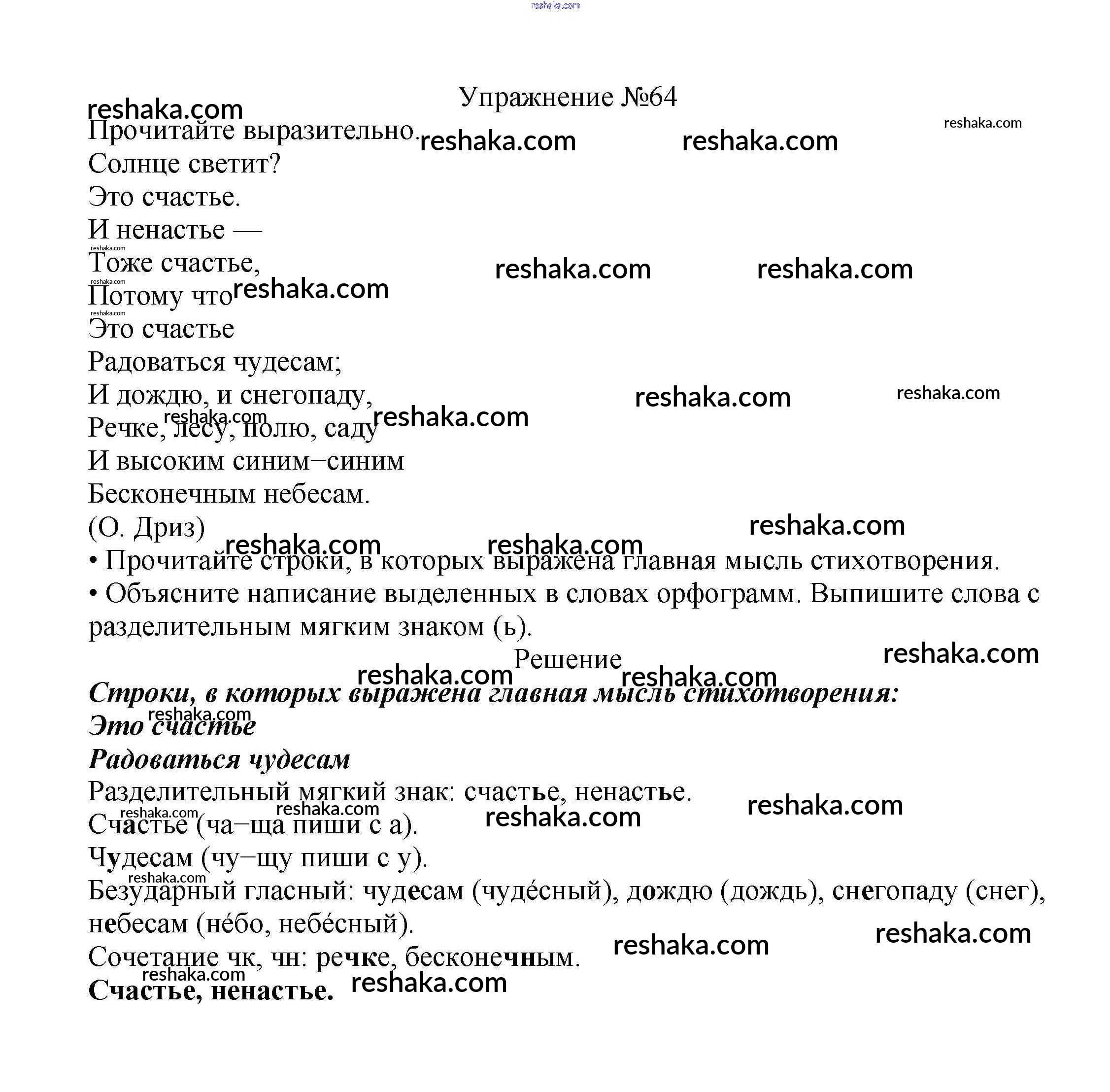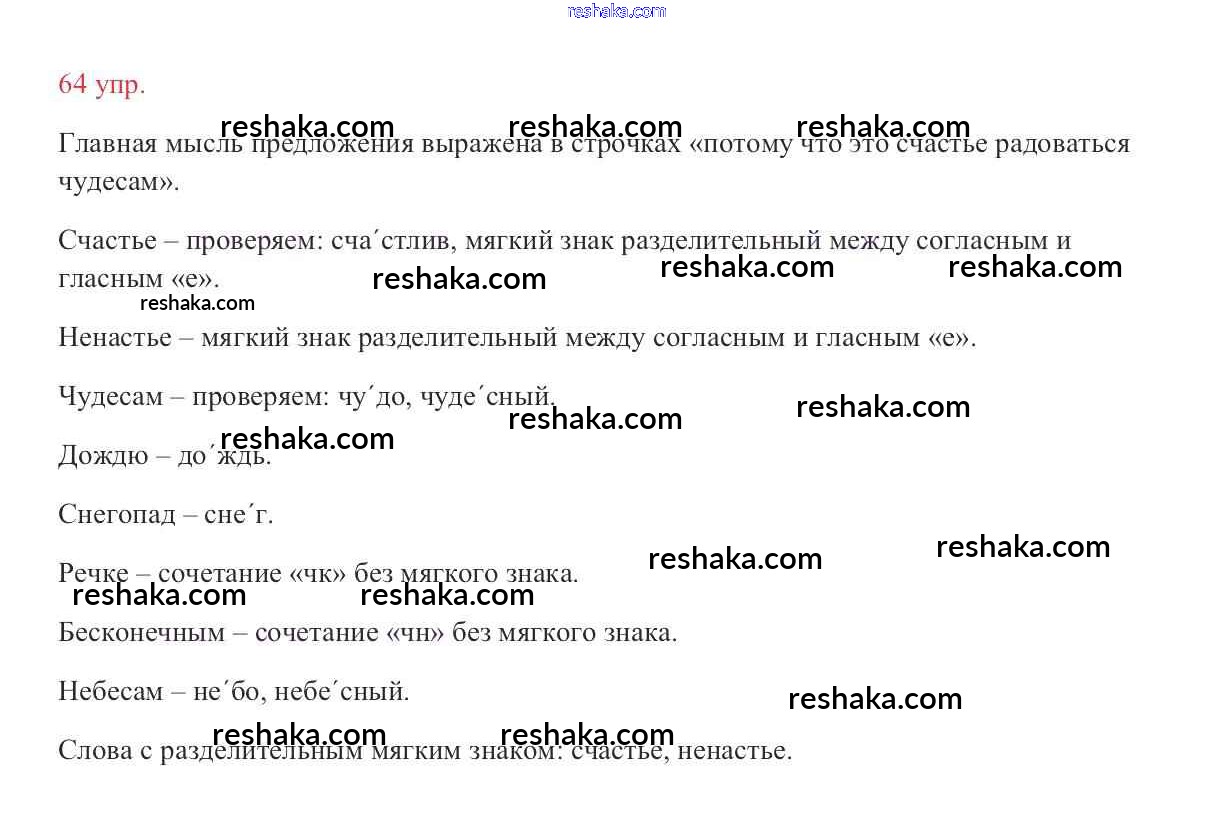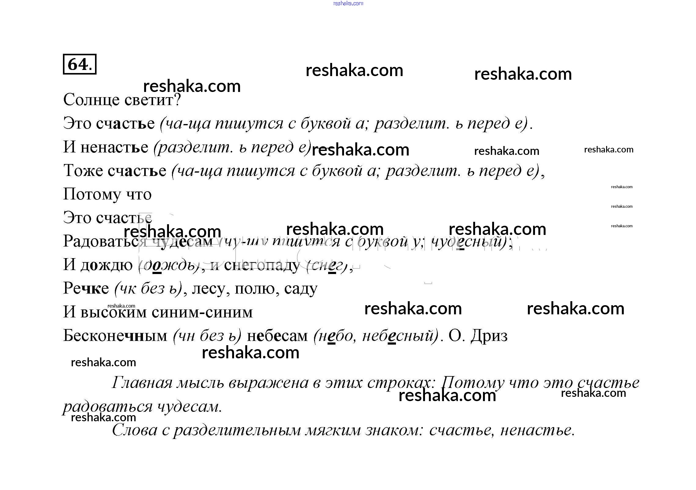Решака - онлайн ответы Русский язык Канакина, Горецкий за 2 класс Учебник ФГОС 2013 - 64