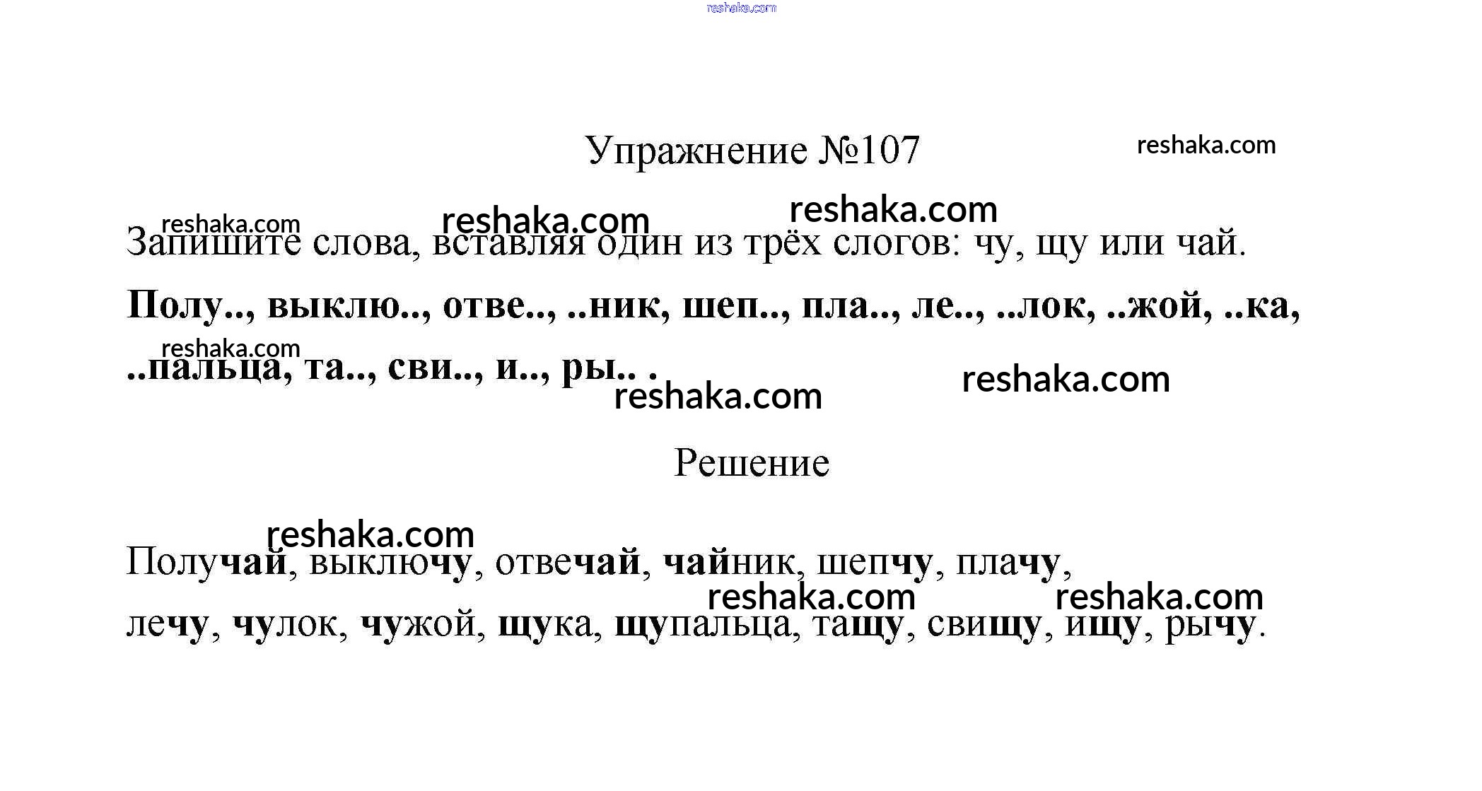 Решака - онлайн ответы Русский язык Климанова, Бабушкина за 2 класс Учебник ФГОС 2015 - 107