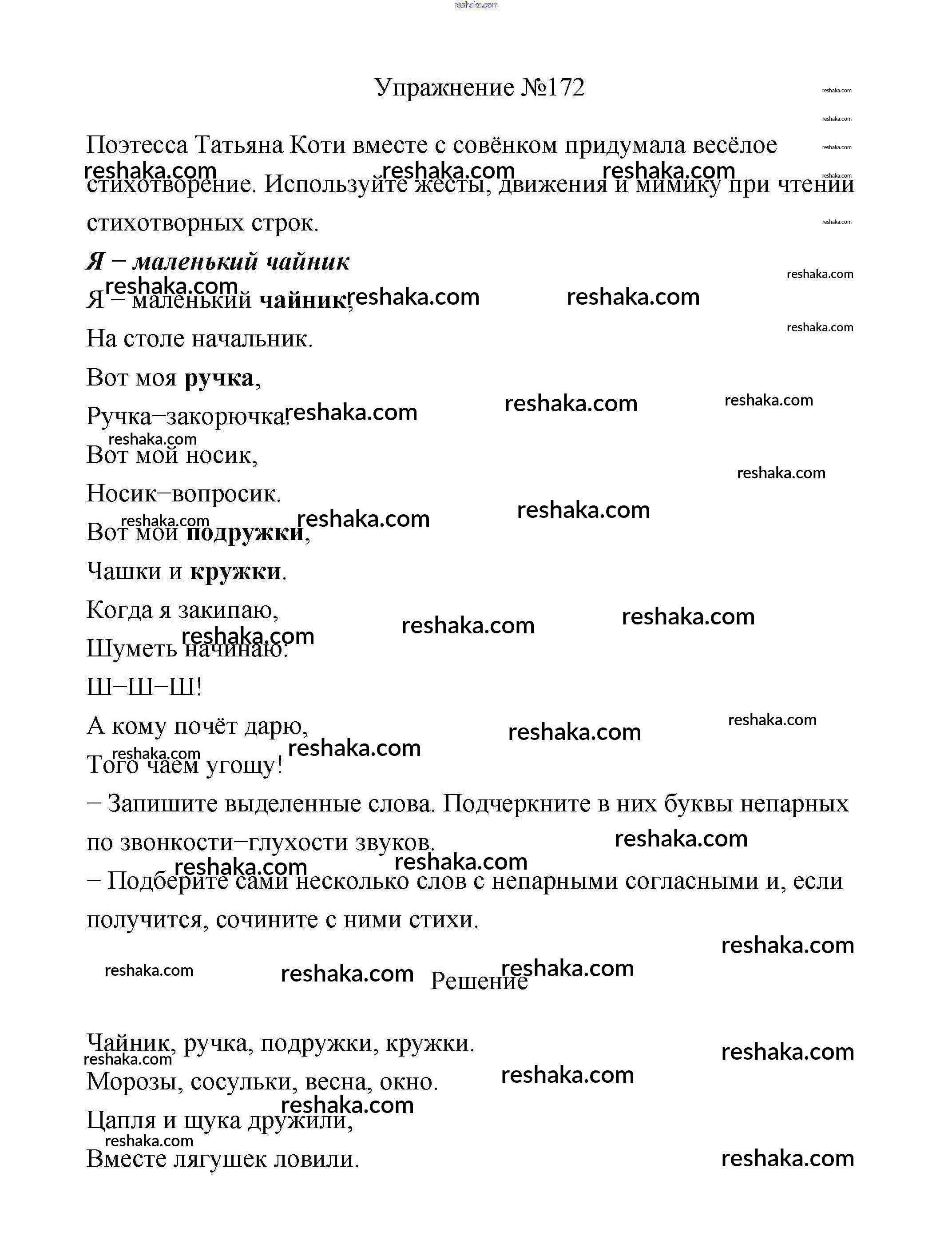 Решака - онлайн ответы Русский язык Климанова, Бабушкина за 2 класс Учебник ФГОС 2015 - 172