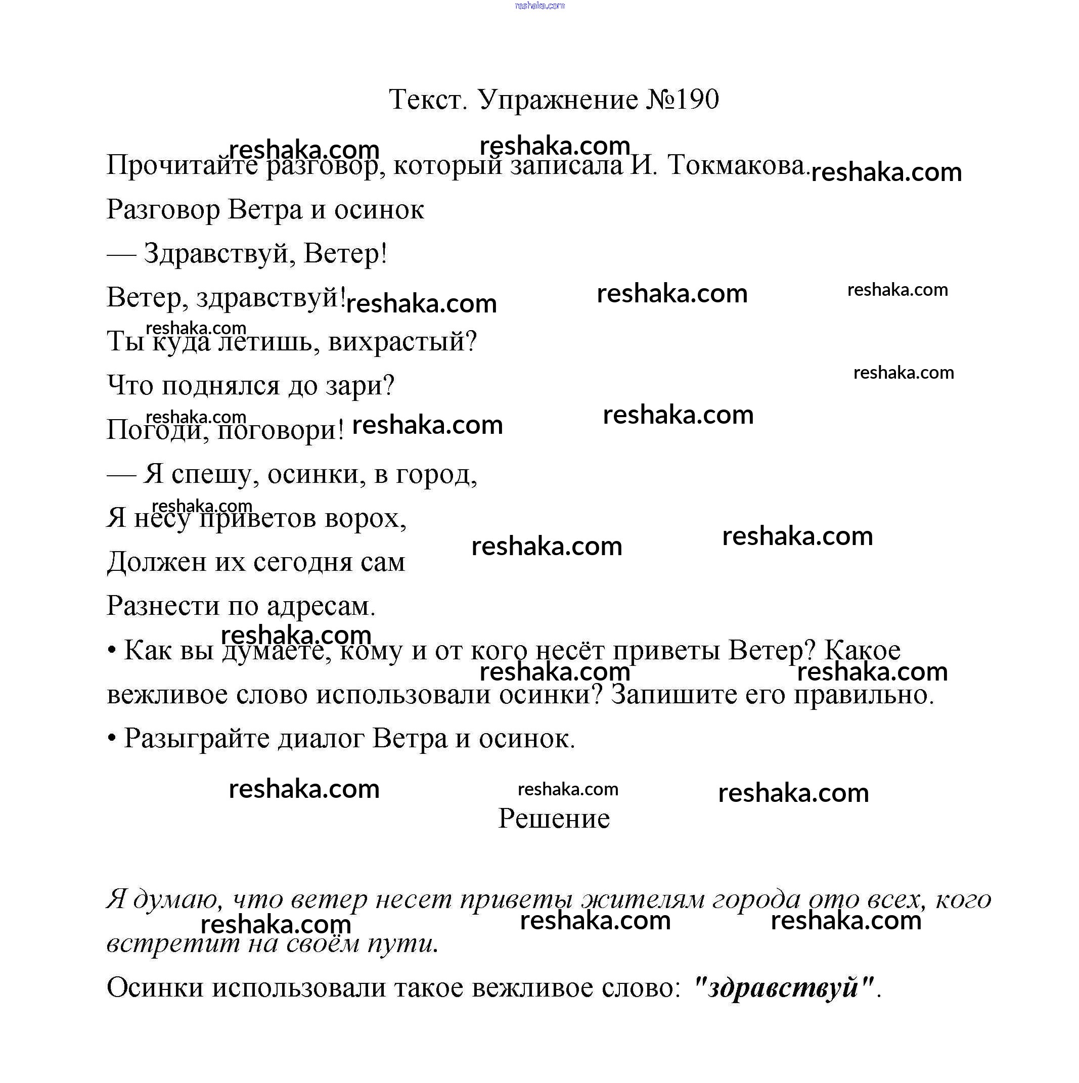 Решака - онлайн ответы Русский язык Климанова, Бабушкина за 2 класс Учебник ФГОС 2015 - 190