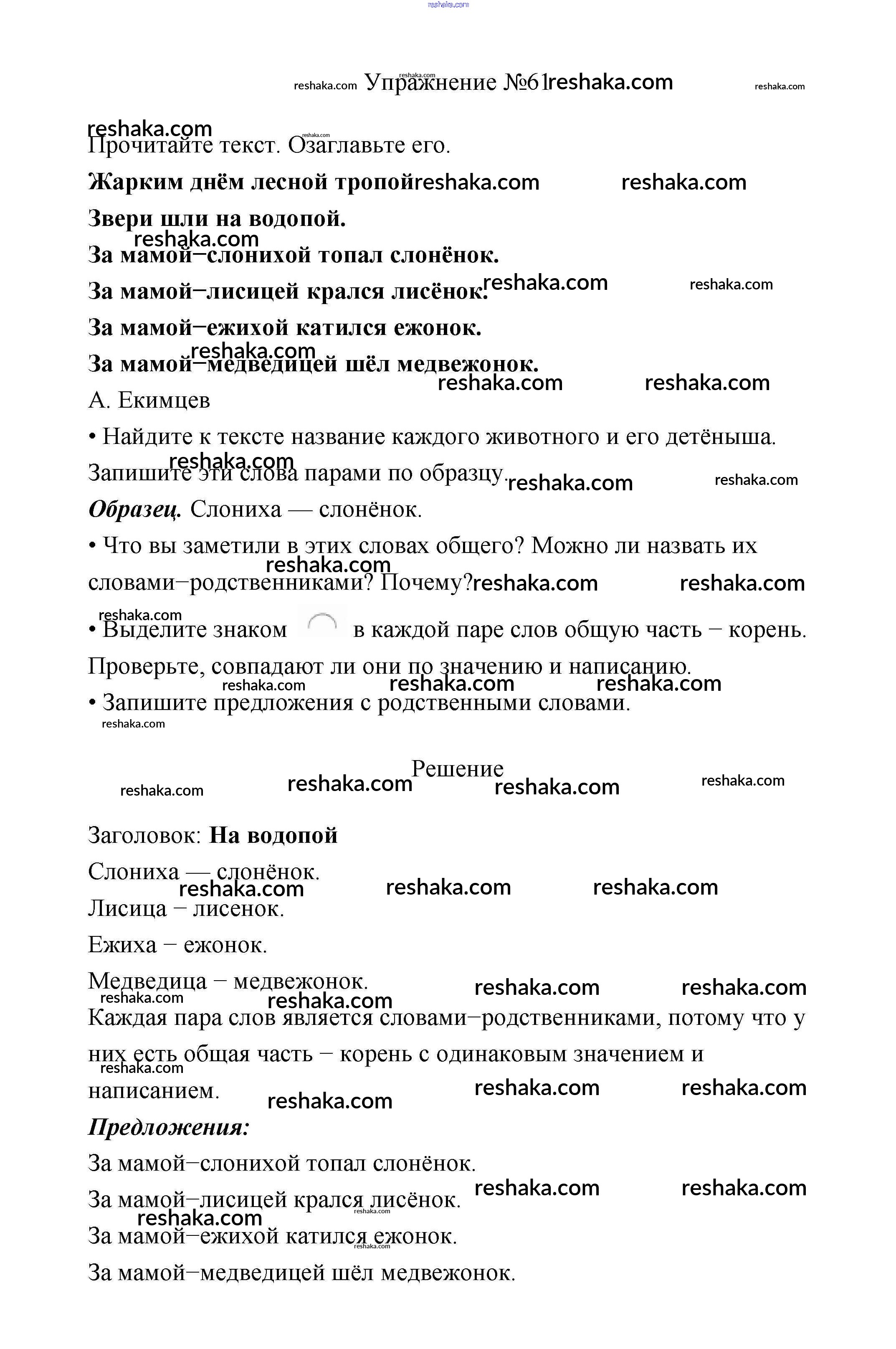 Решака - онлайн ответы Русский язык Климанова, Бабушкина за 2 класс Учебник ФГОС 2015 - 61