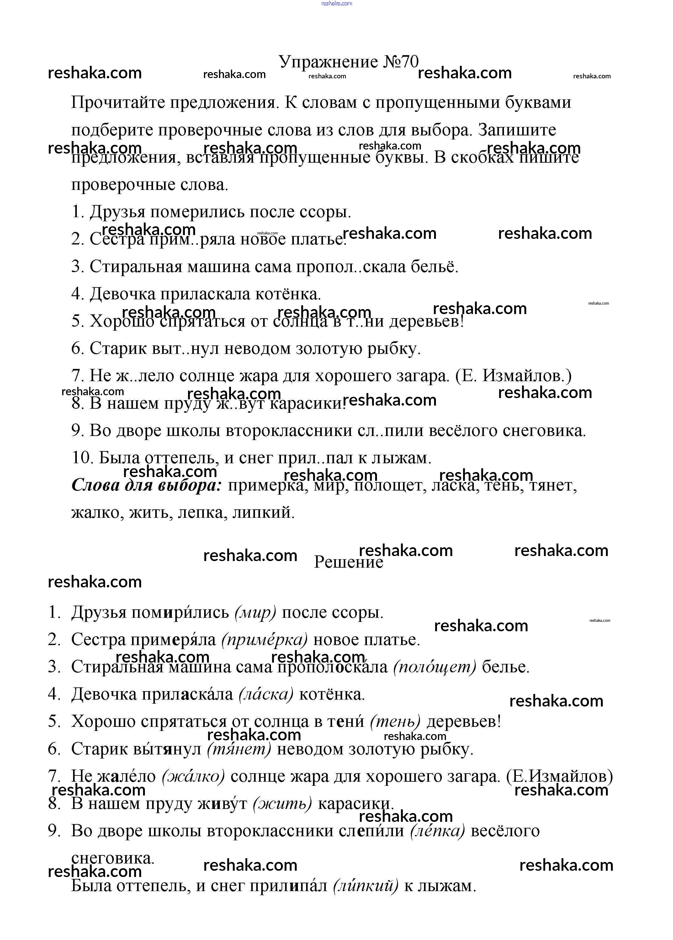 Решака - онлайн ответы Русский язык Климанова, Бабушкина за 2 класс Учебник ФГОС 2015 - 70