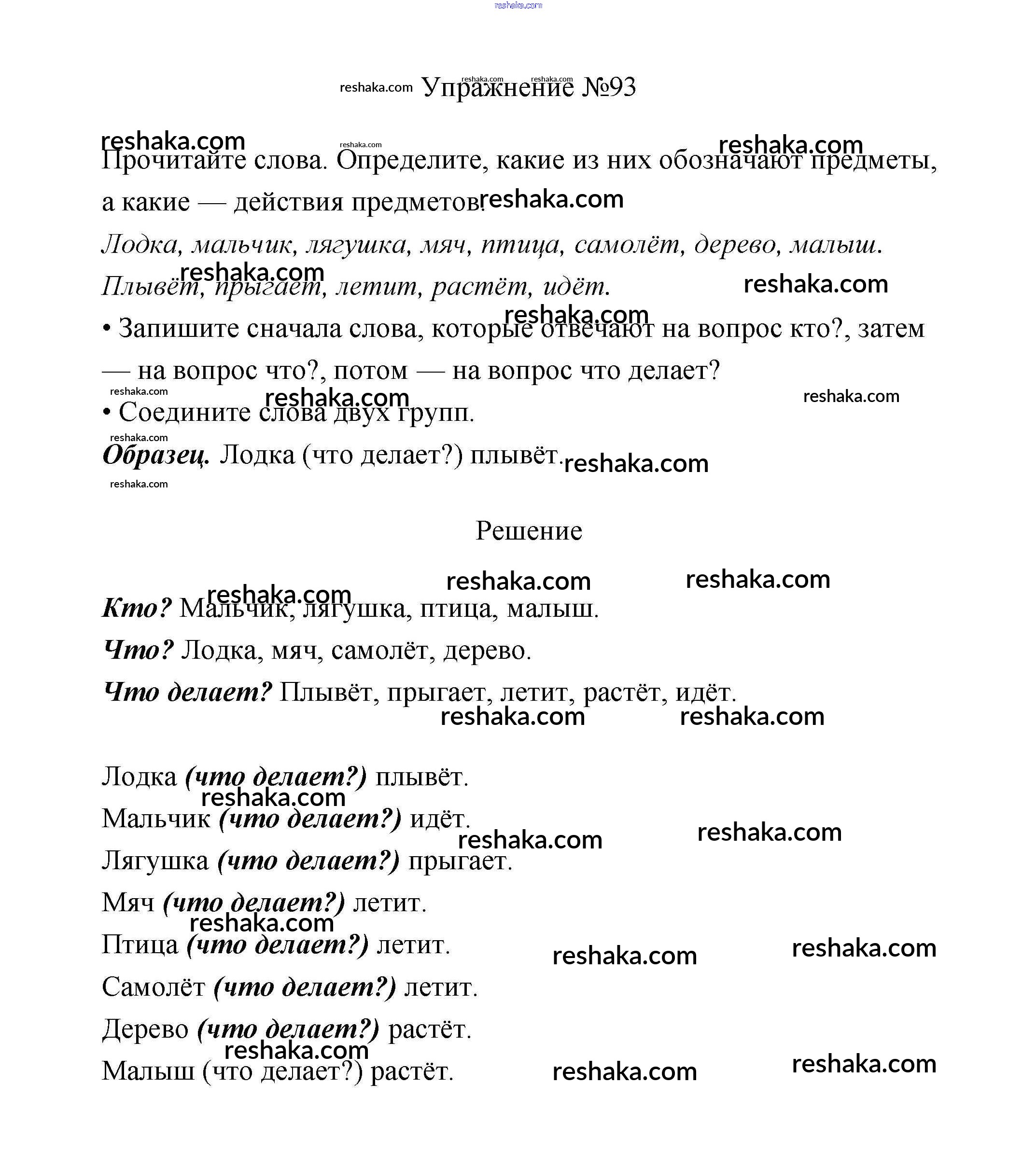 Решака - онлайн ответы Русский язык Климанова, Бабушкина за 2 класс Учебник ФГОС 2015 - 93