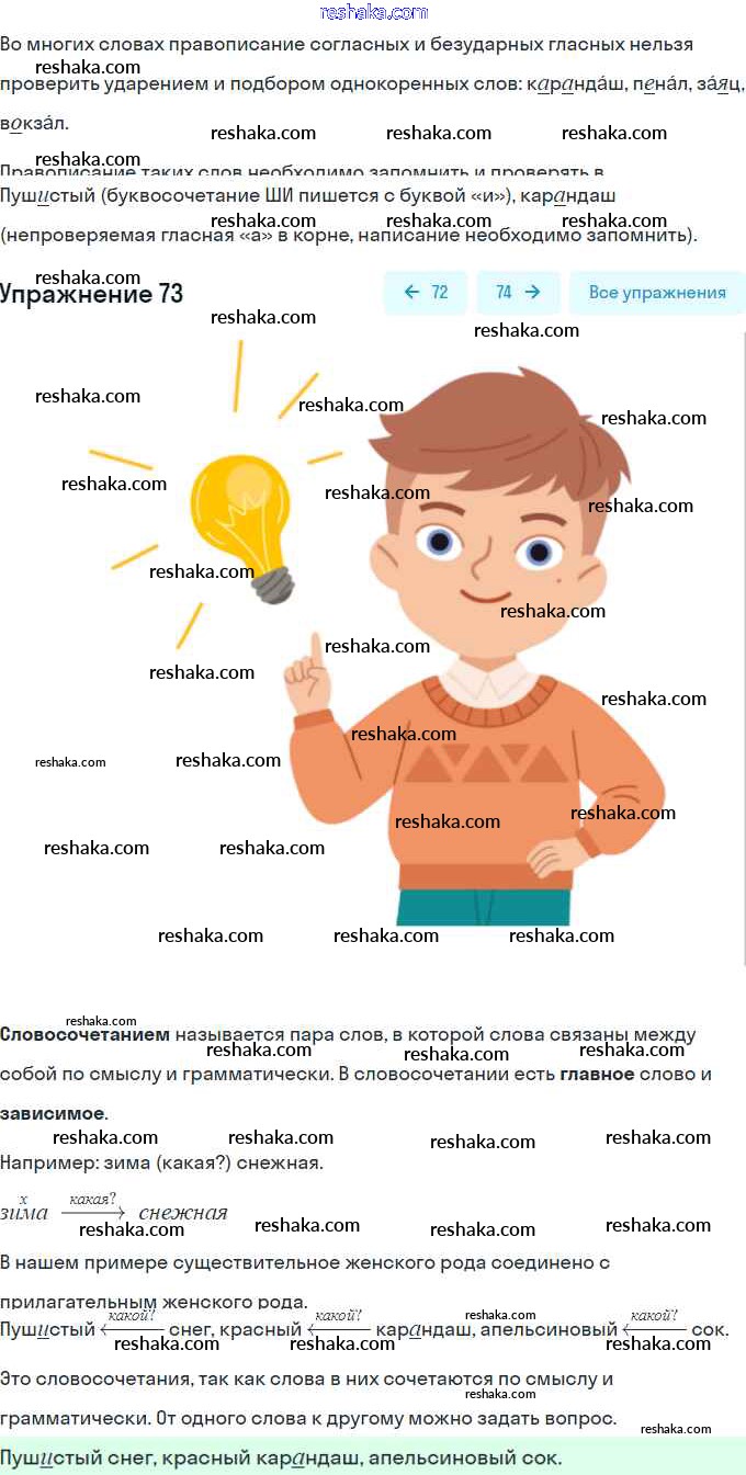 Решака - онлайн ответы Русский язык Климанова, Бабушкина за 2 класс Рабочая тетрадь ФГОС 2016 - 73