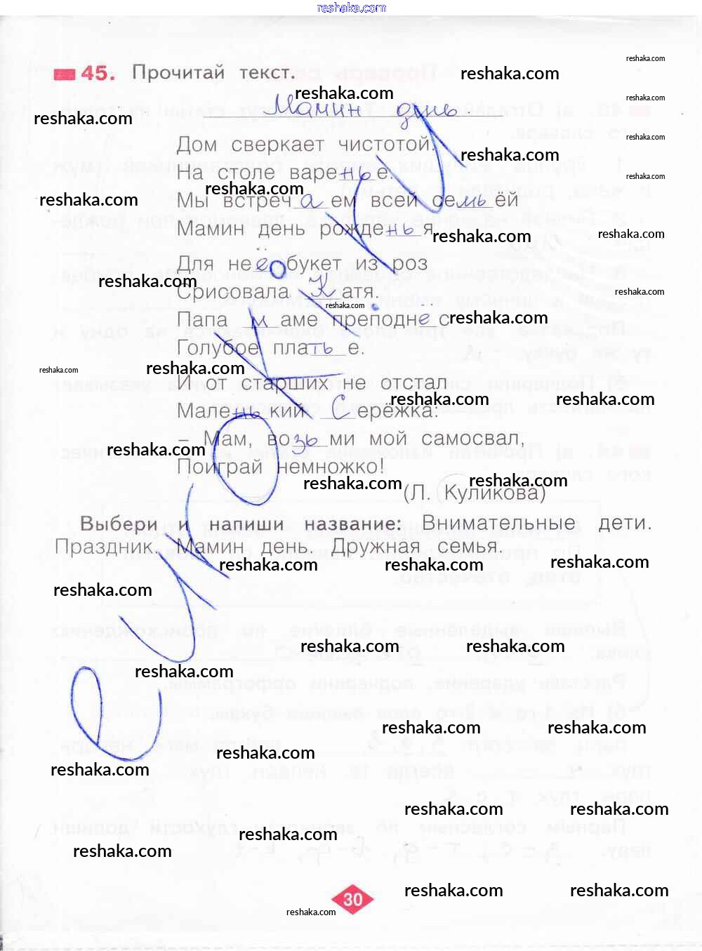Решака - онлайн ответы Русский язык Яковлева за 2 класс Рабочая тетрадь ФГОС 2015 - 30