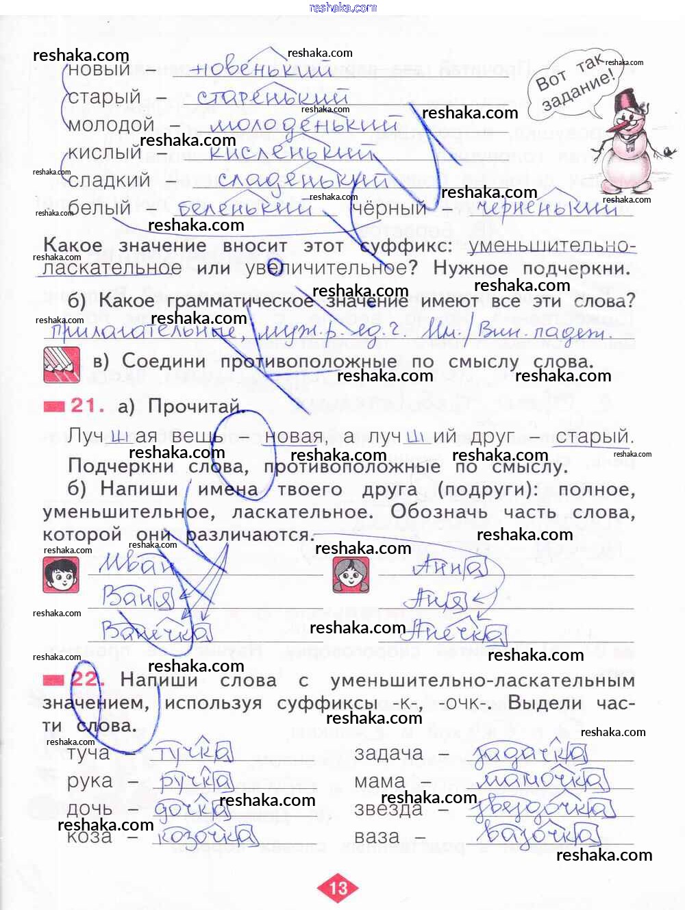 Решака - онлайн ответы Русский язык Яковлева за 2 класс Рабочая тетрадь ФГОС 2015 - 13