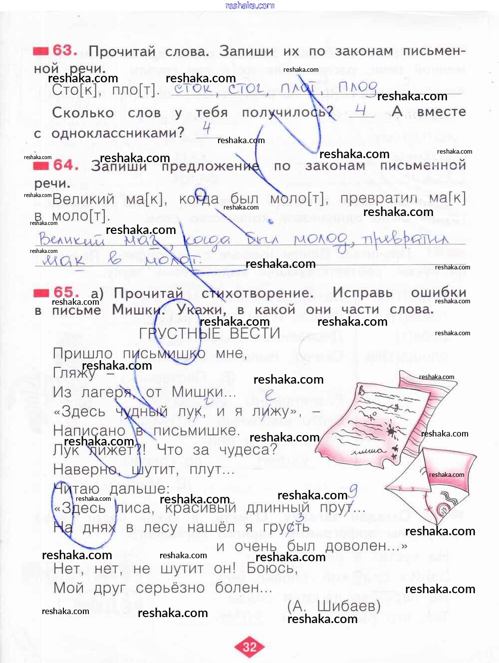 Решака - онлайн ответы Русский язык Яковлева за 2 класс Рабочая тетрадь ФГОС 2015 - 32