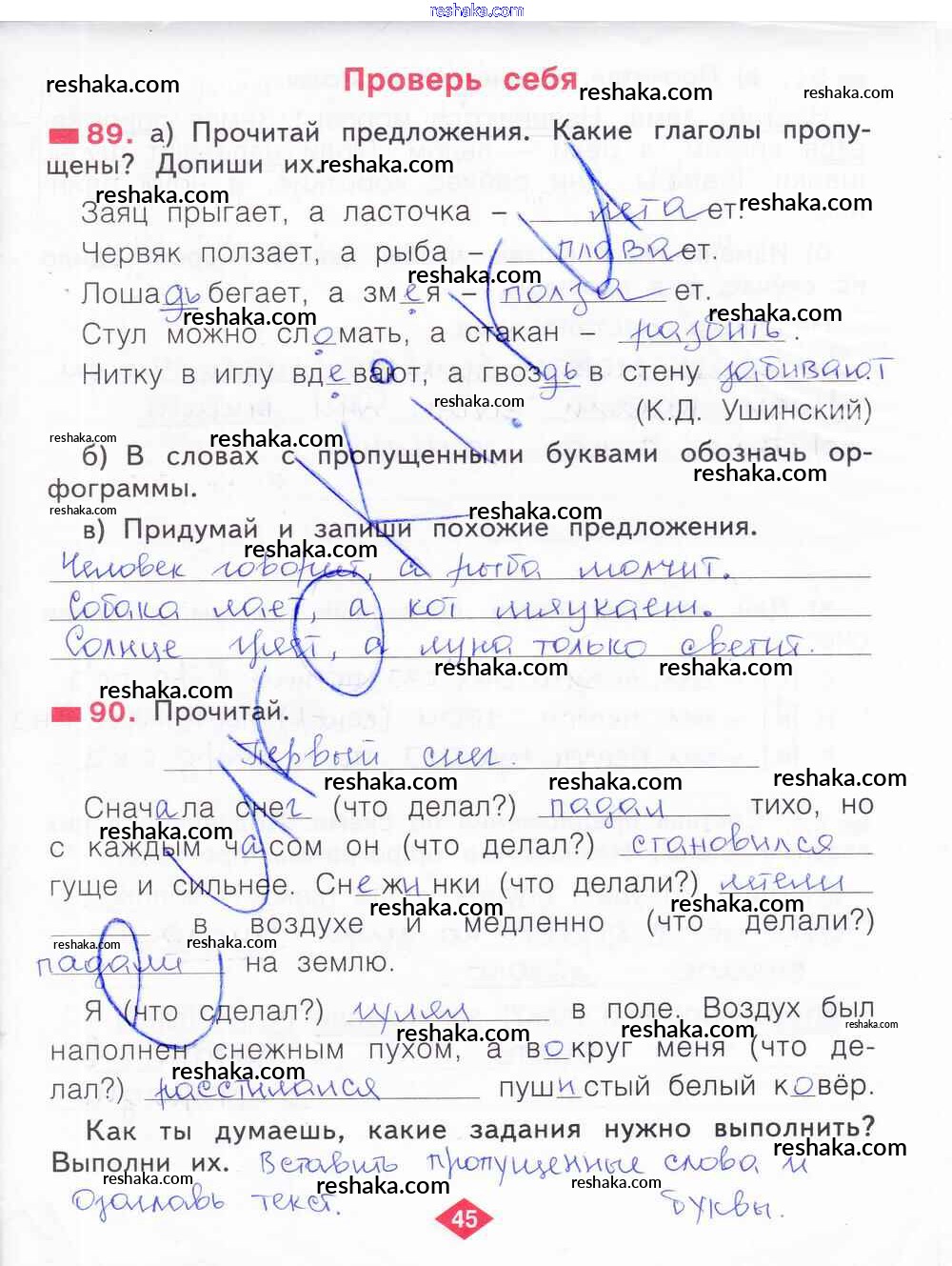 Решака - онлайн ответы Русский язык Яковлева за 2 класс Рабочая тетрадь ФГОС 2015 - 45