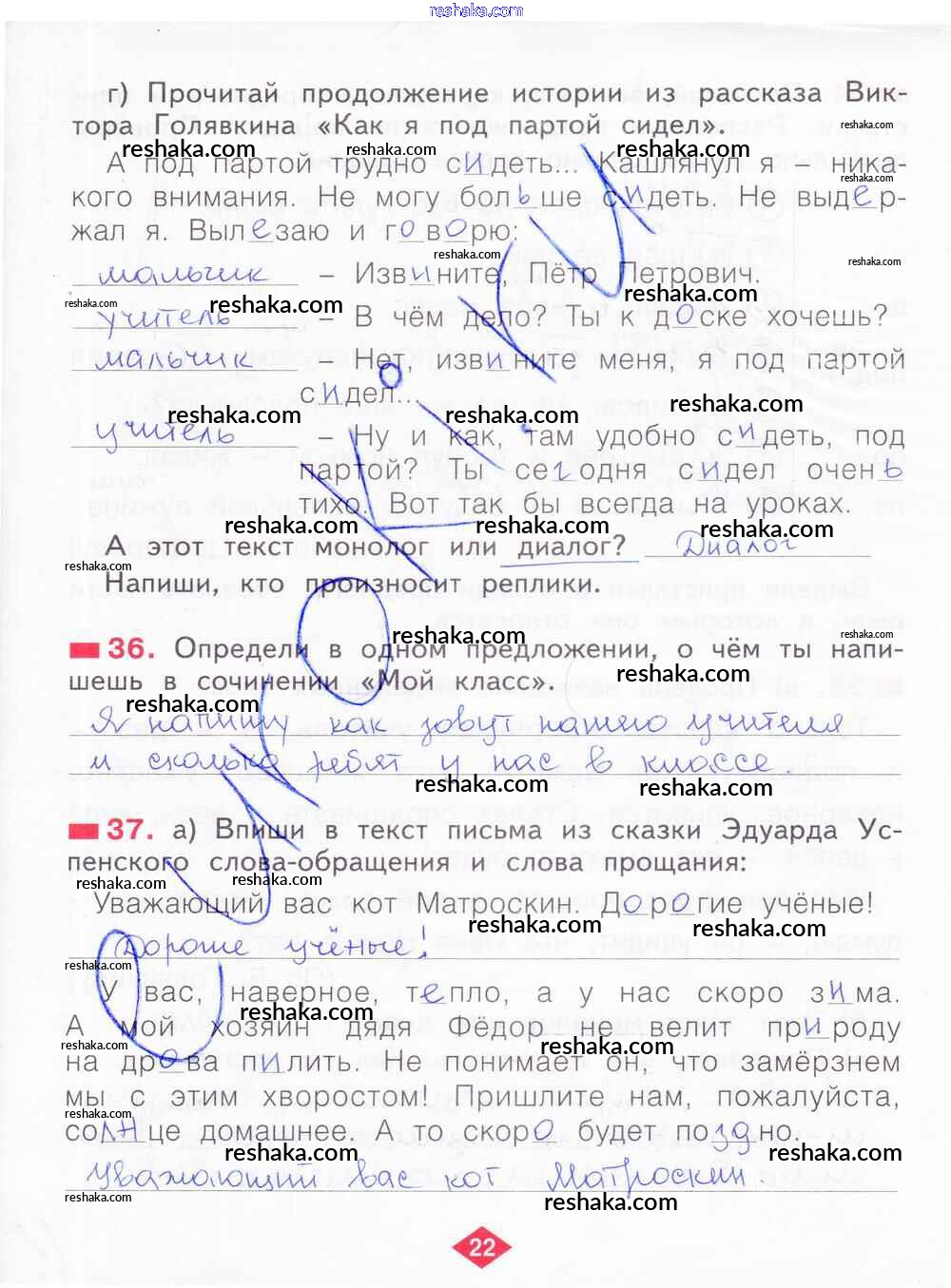 Решака - онлайн ответы Русский язык Яковлева за 2 класс Рабочая тетрадь ФГОС 2015 - 22