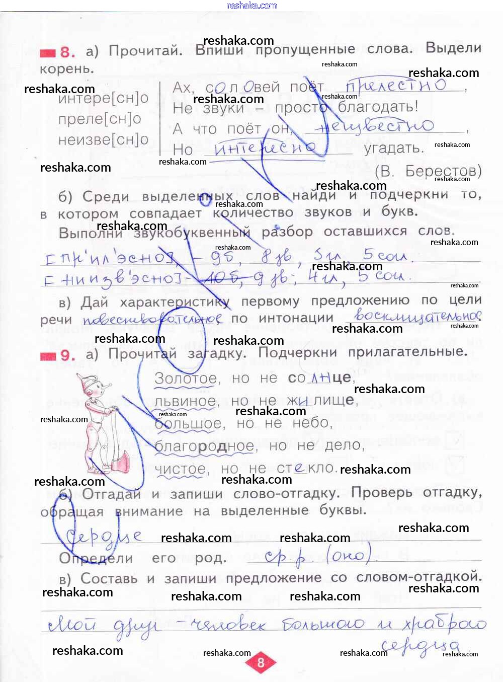 Решака - онлайн ответы Русский язык Яковлева за 2 класс Рабочая тетрадь ФГОС 2015 - 8