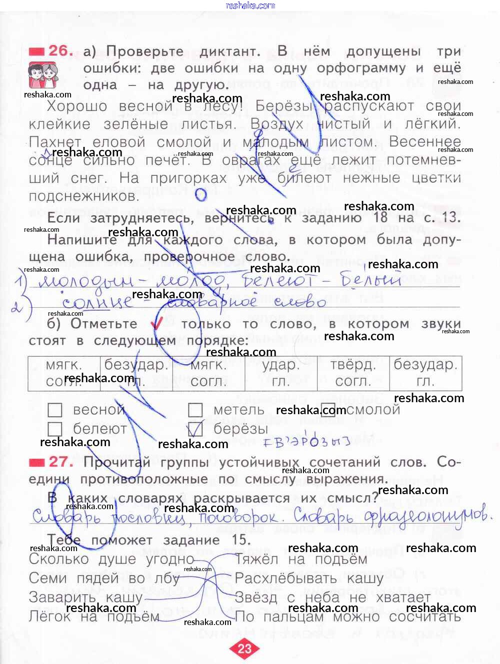Решака - онлайн ответы Русский язык Яковлева за 2 класс Рабочая тетрадь ФГОС 2015 - 23