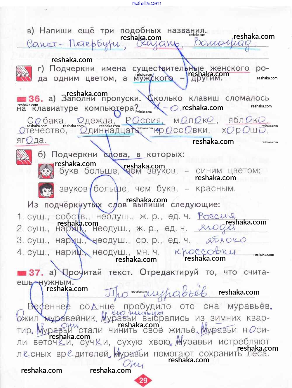 Решака - онлайн ответы Русский язык Яковлева за 2 класс Рабочая тетрадь ФГОС 2015 - 29