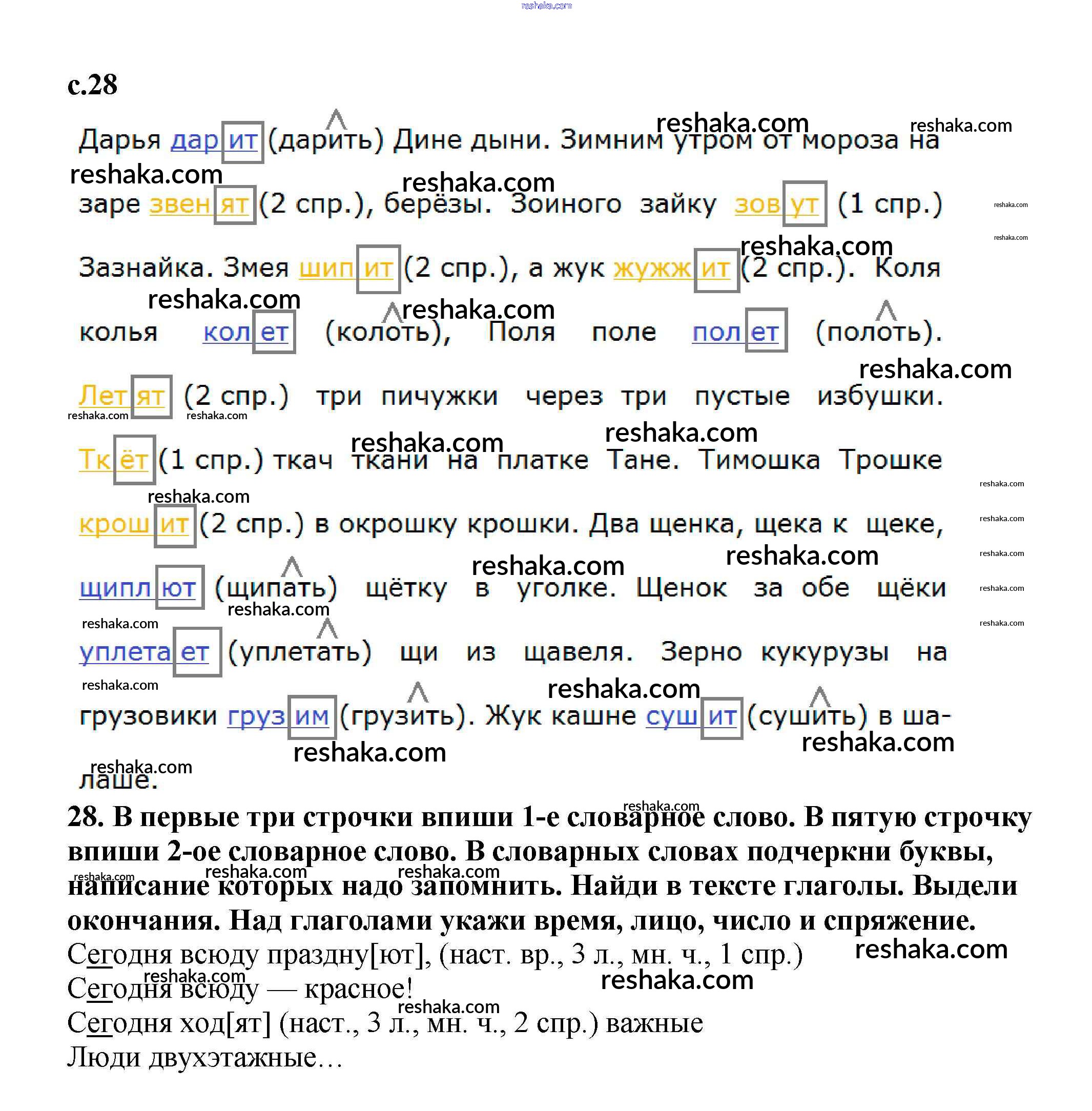 Решака - онлайн ответы Русский язык Байкова за 3 класс Тетрадь для самостоятельной работы ФГОС 2017 - 28