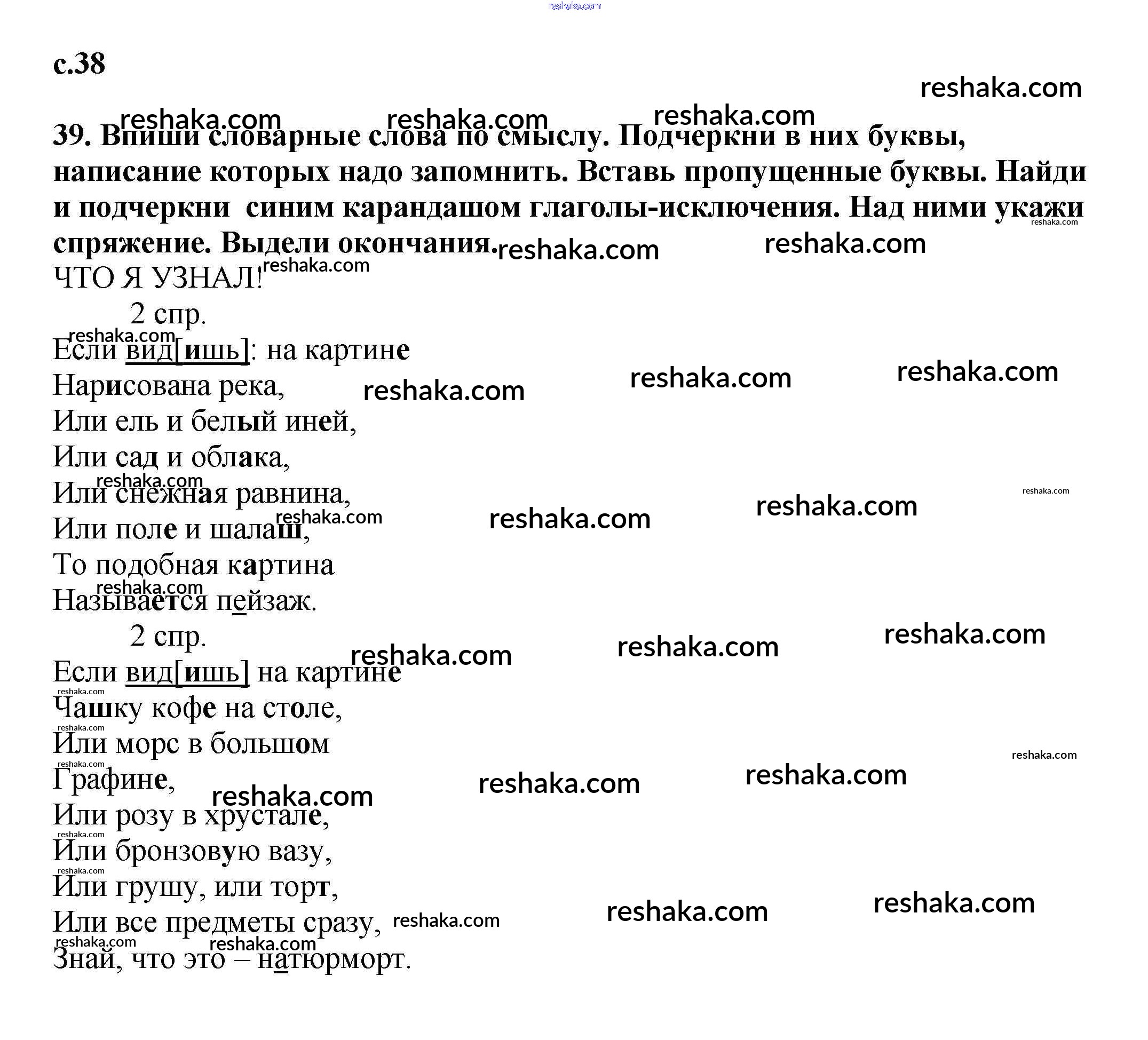Решака - онлайн ответы Русский язык Байкова за 3 класс Тетрадь для самостоятельной работы ФГОС 2017 - 38