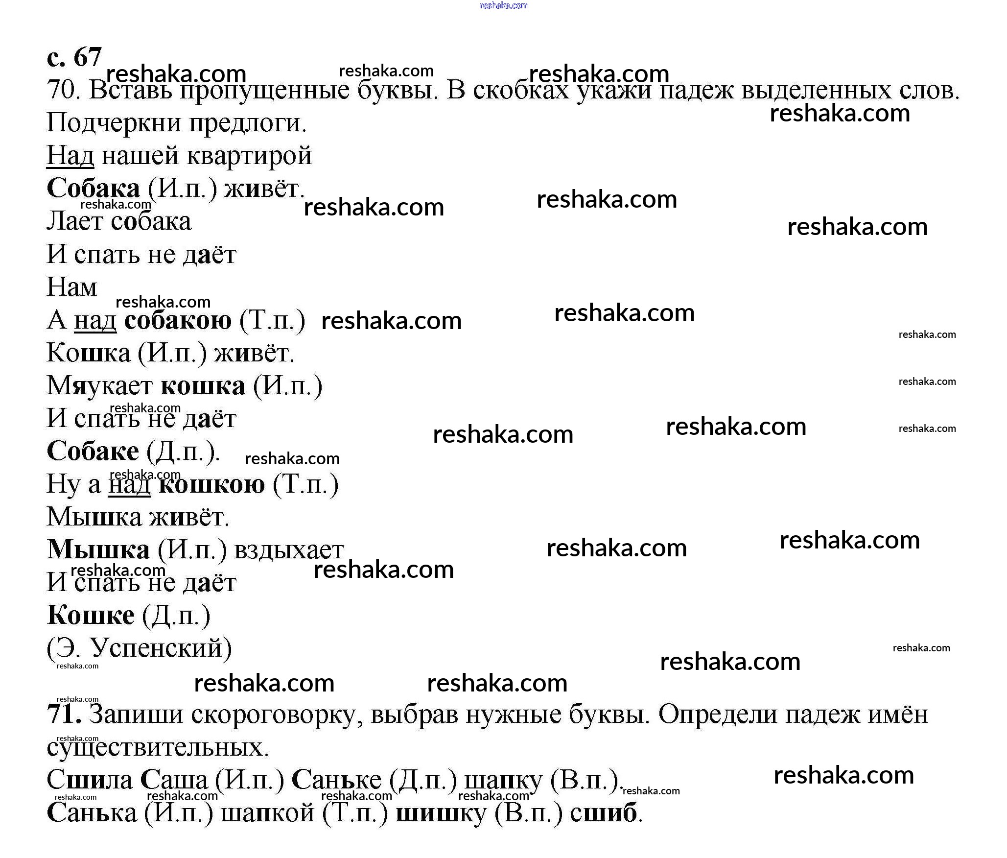 Решака - онлайн ответы Русский язык Байкова за 3 класс Тетрадь для самостоятельной работы ФГОС 2017 - 67