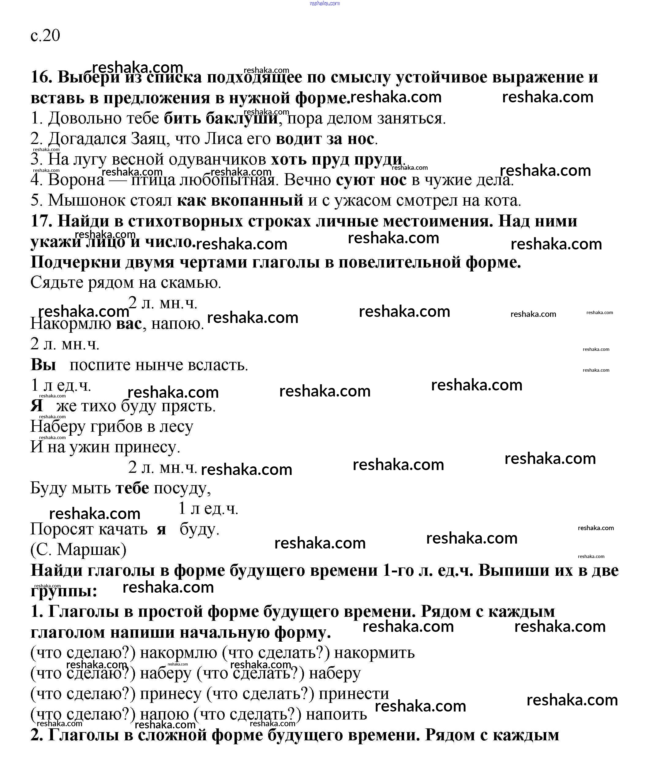 Решака - онлайн ответы Русский язык Байкова за 3 класс Тетрадь для самостоятельной работы ФГОС 2017 - 20