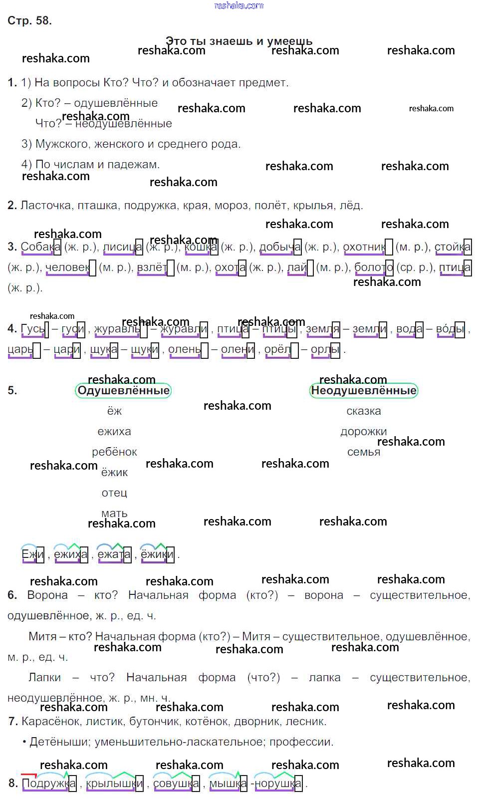 Решака - онлайн ответы Русский язык Бунеев, Бунеева за 3 класс Учебник ФГОС 2015 - стр.58