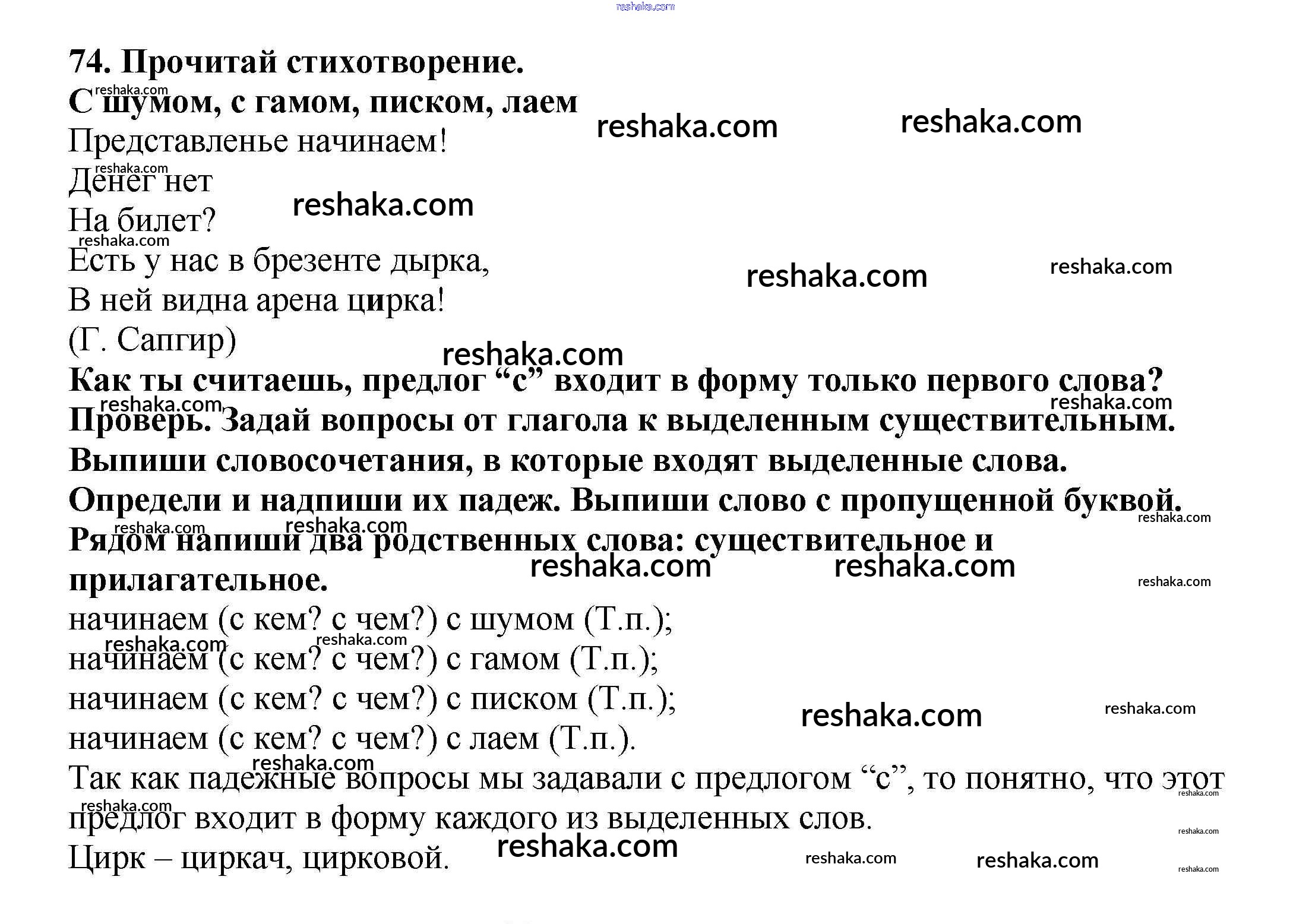Решака - онлайн ответы Русский язык Каленчук, Чуракова за 3 класс Учебник ФГОС 2014 - 74