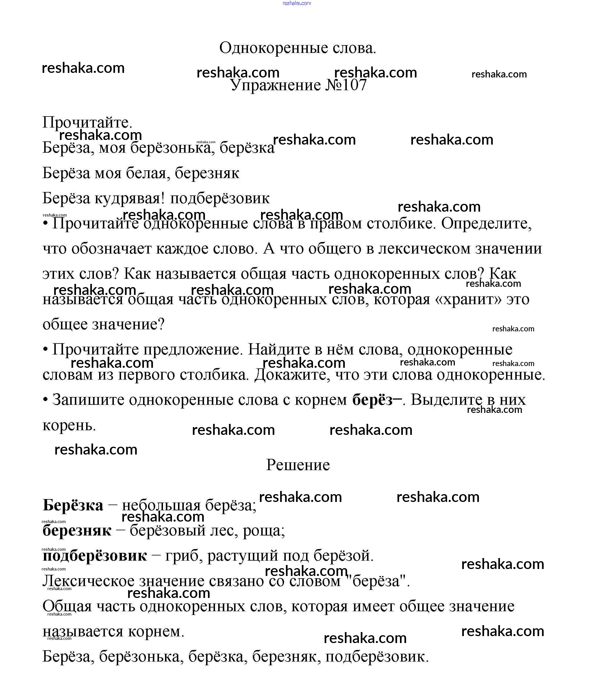 Решака - онлайн ответы Русский язык Канакина, Горецкий за 3 класс Учебник ФГОС 2013 - 107