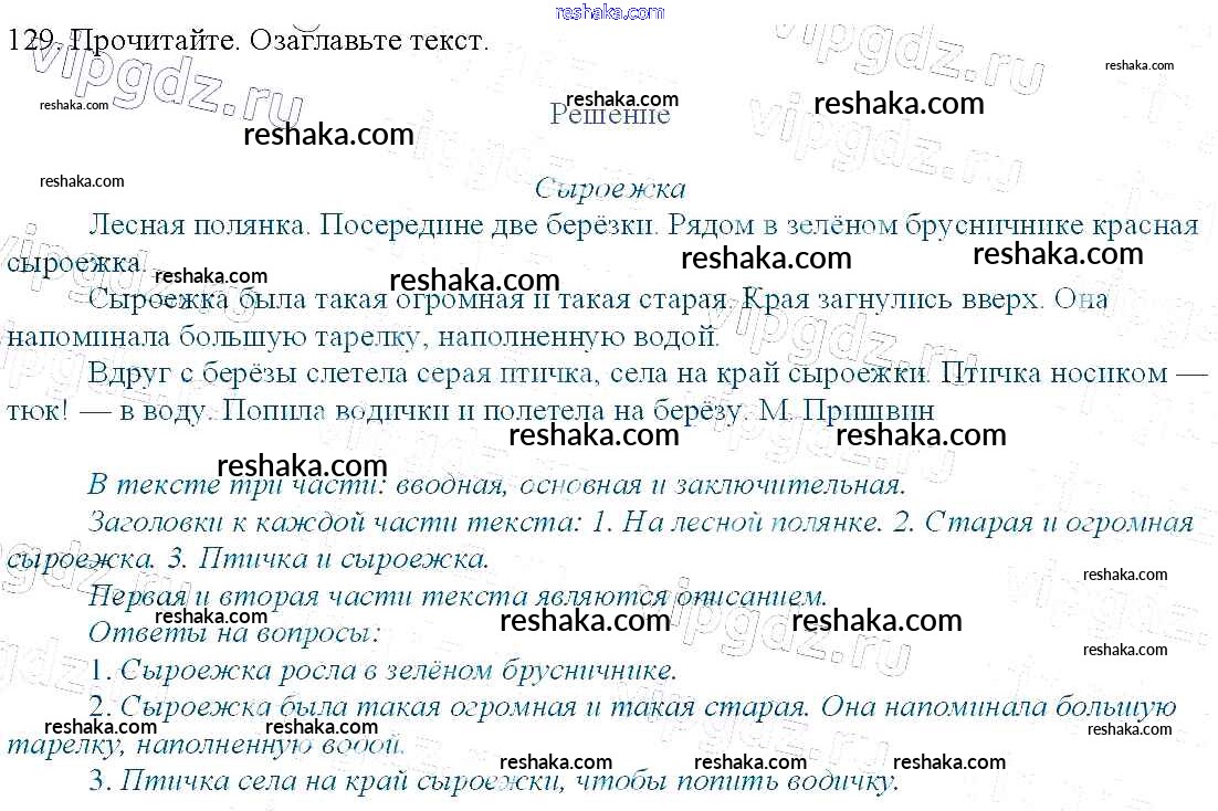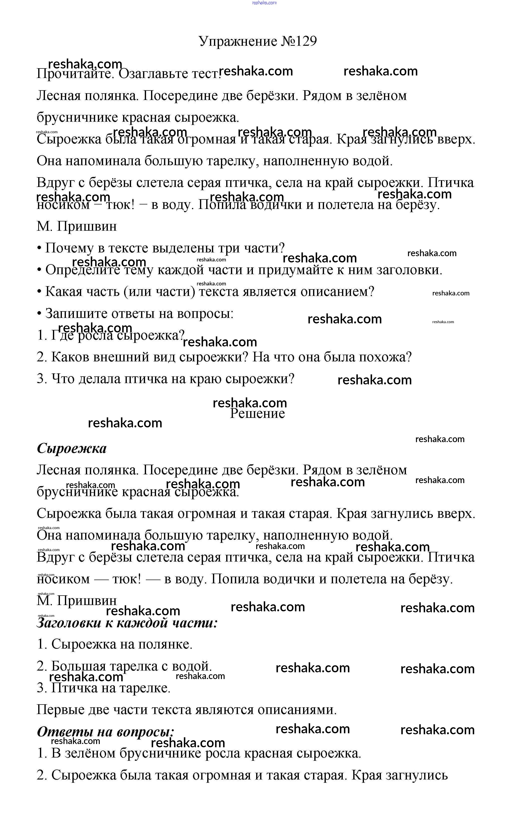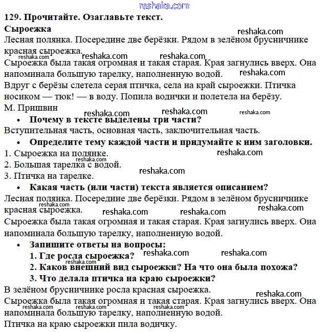 Решака - онлайн ответы Русский язык Канакина, Горецкий за 3 класс Учебник ФГОС 2013 - 129