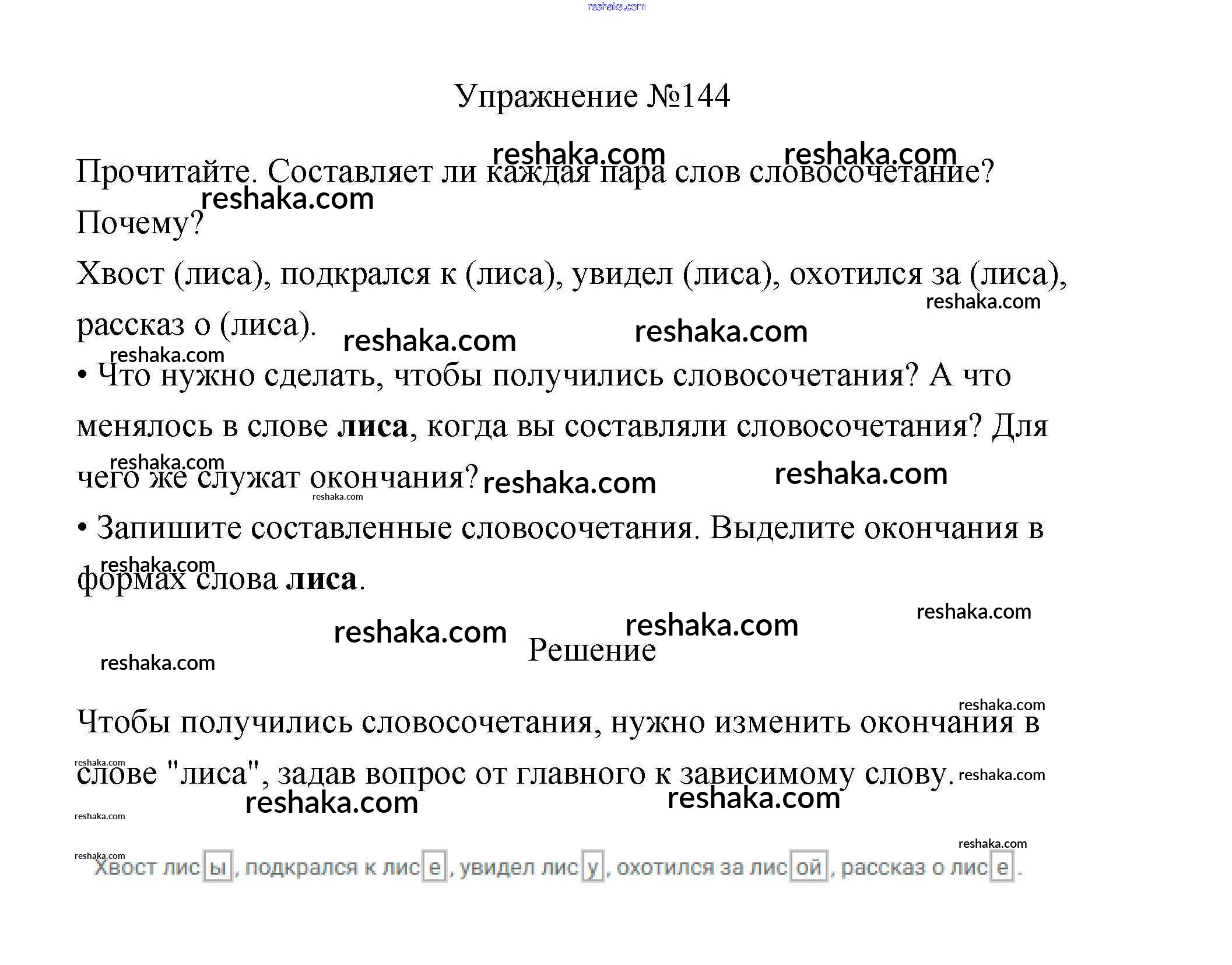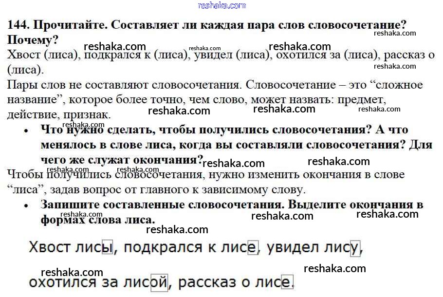 Решака - онлайн ответы Русский язык Канакина, Горецкий за 3 класс Учебник ФГОС 2013 - 144