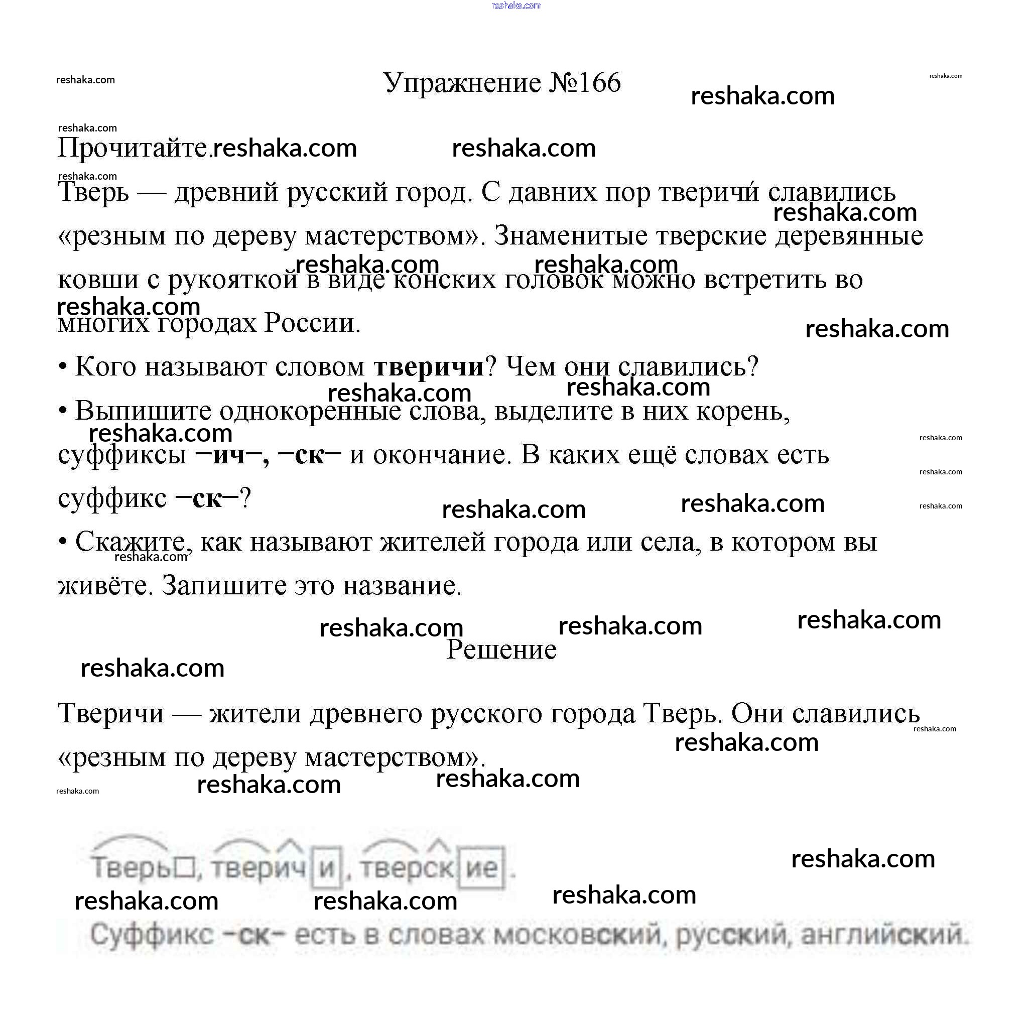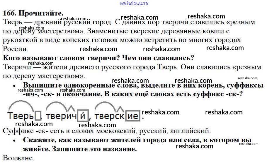Решака - онлайн ответы Русский язык Канакина, Горецкий за 3 класс Учебник ФГОС 2013 - 166