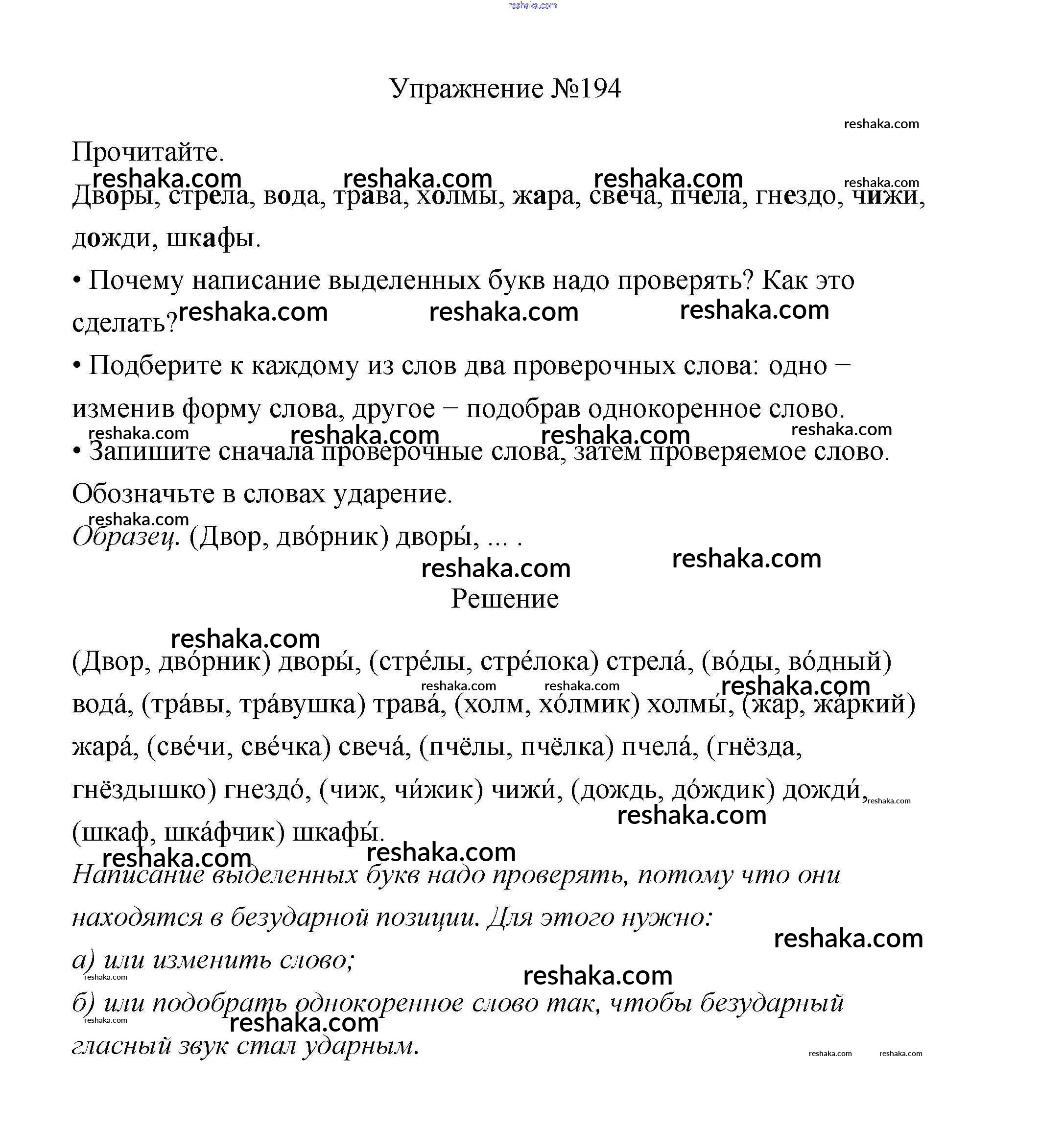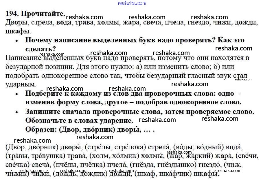 Решака - онлайн ответы Русский язык Канакина, Горецкий за 3 класс Учебник ФГОС 2013 - 194