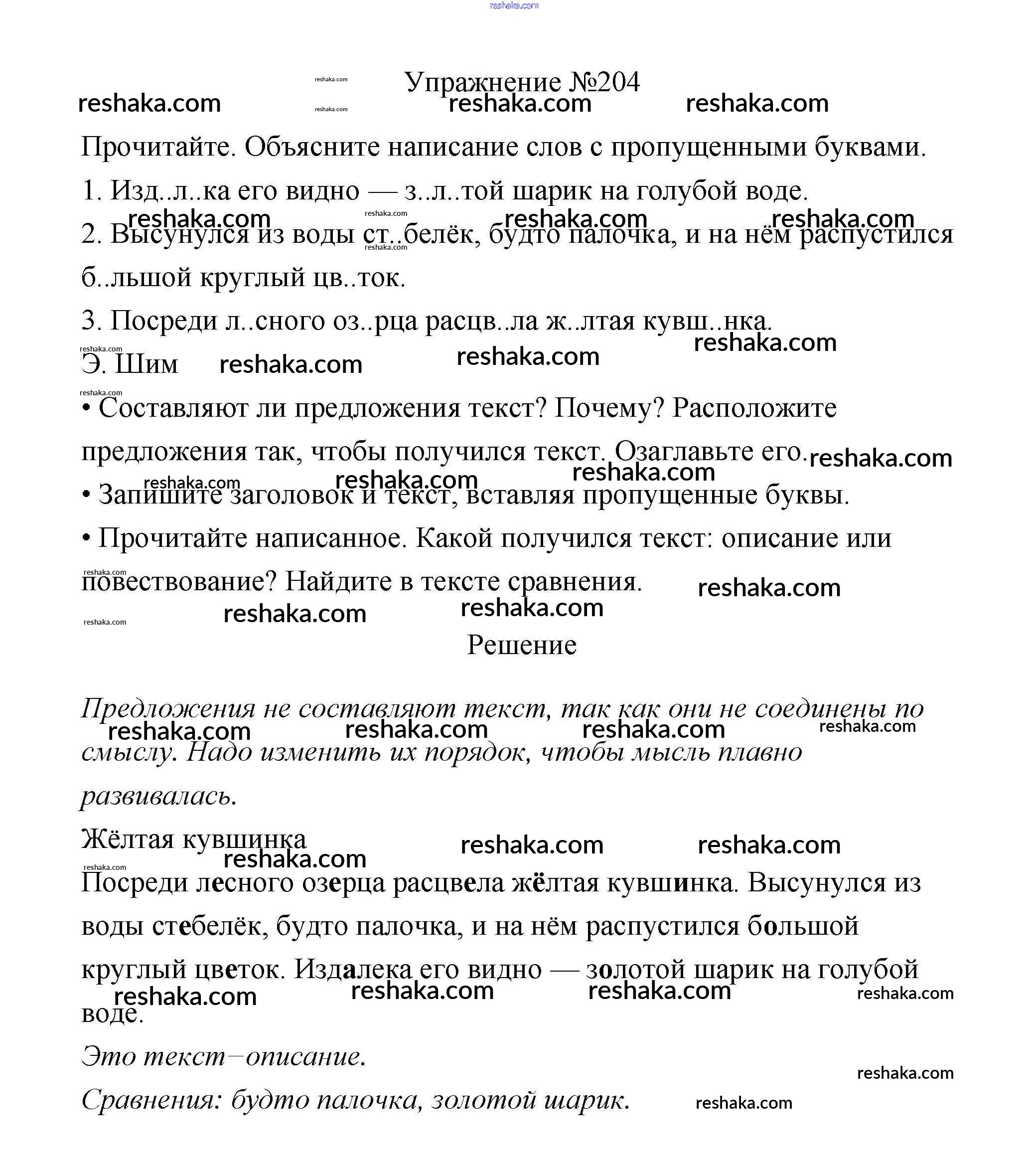 Решака - онлайн ответы Русский язык Канакина, Горецкий за 3 класс Учебник ФГОС 2013 - 204