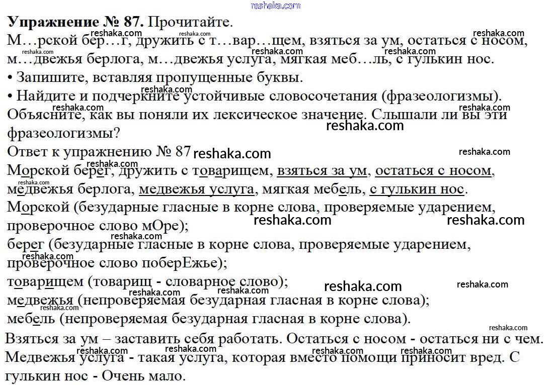Решака - онлайн ответы Русский язык Канакина, Горецкий за 3 класс Учебник ФГОС 2013 - 87