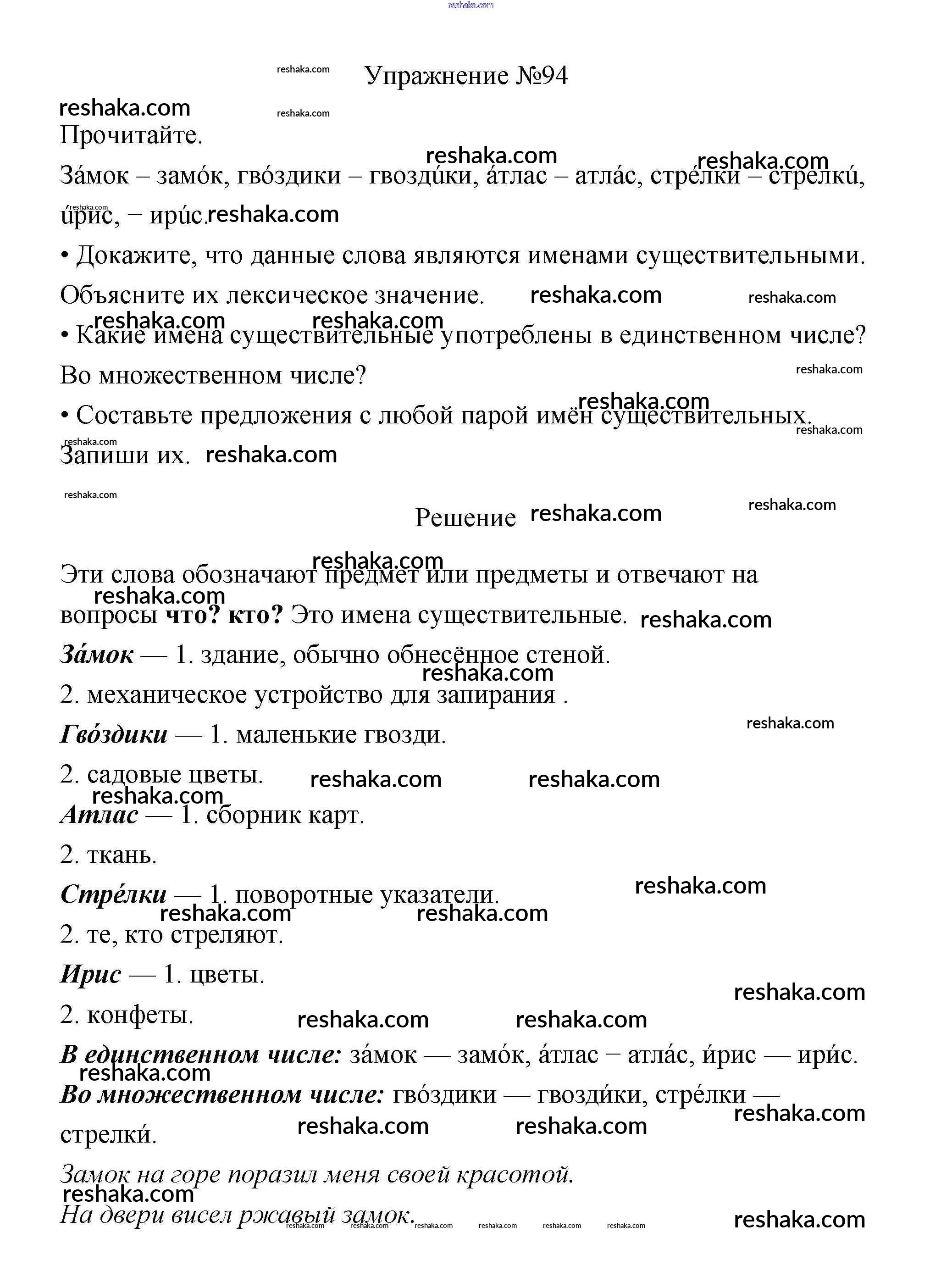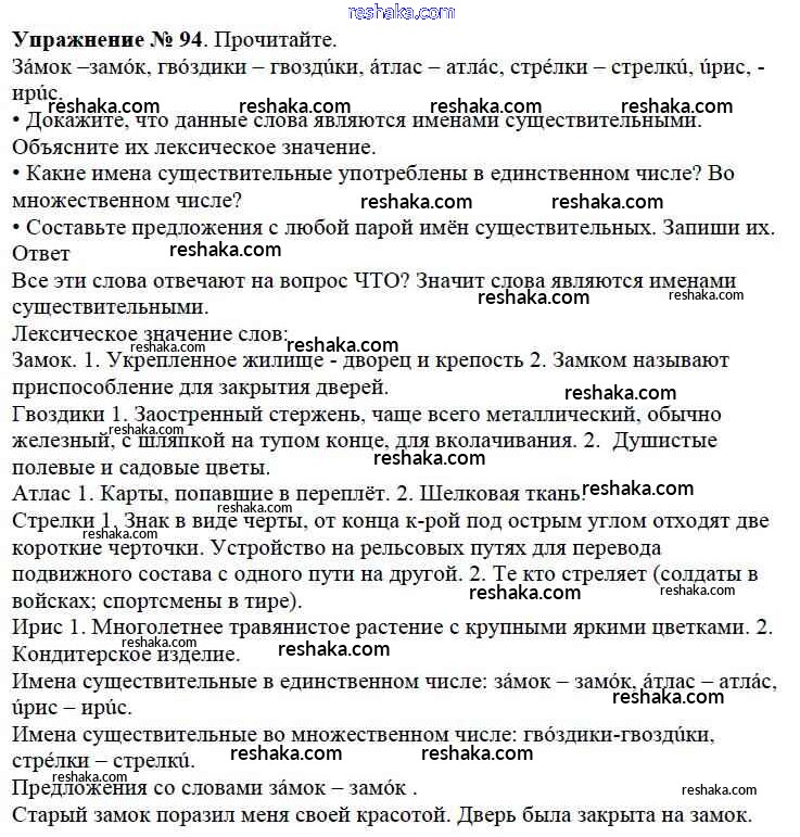 Решака - онлайн ответы Русский язык Канакина, Горецкий за 3 класс Учебник ФГОС 2013 - 94