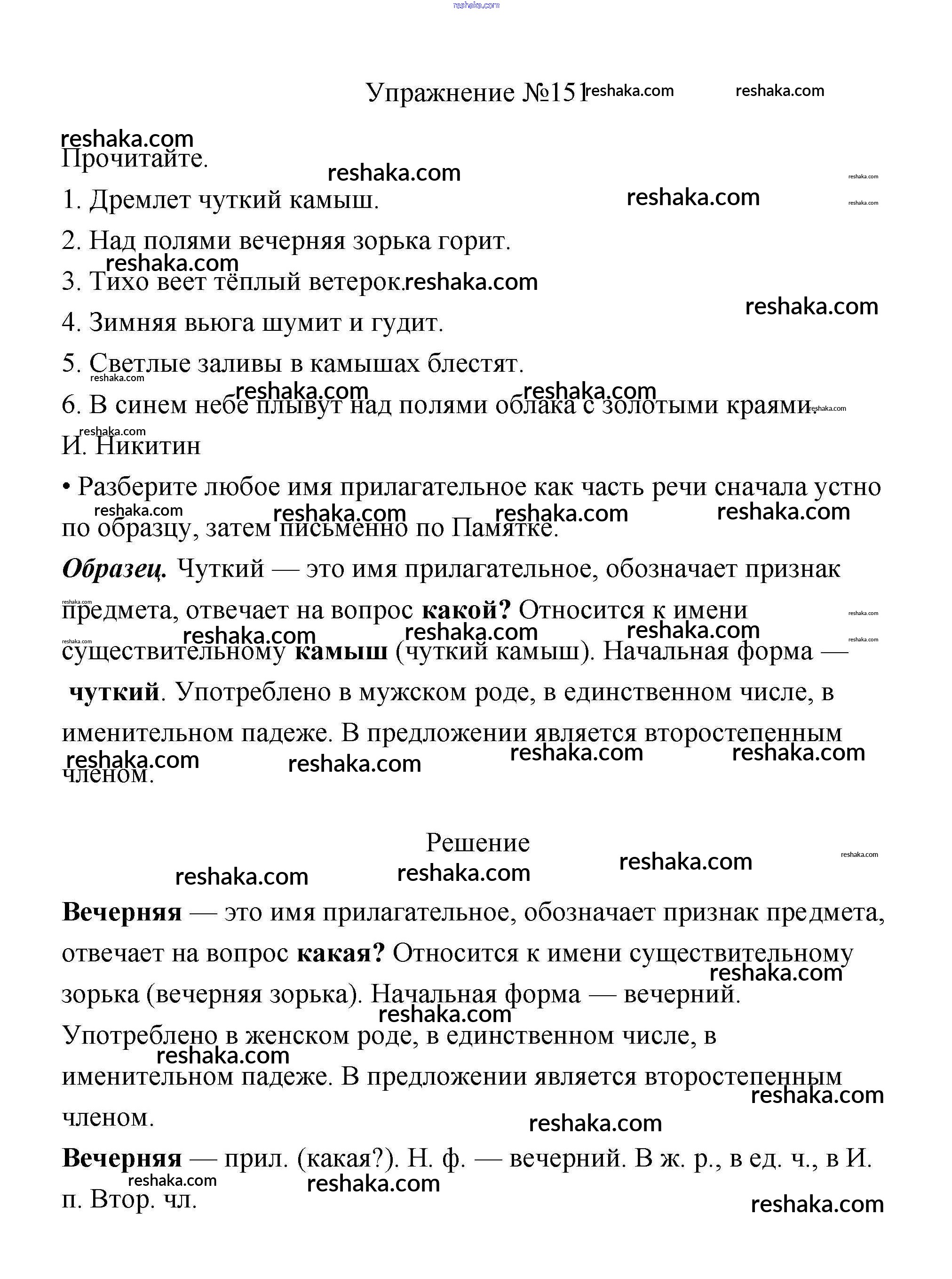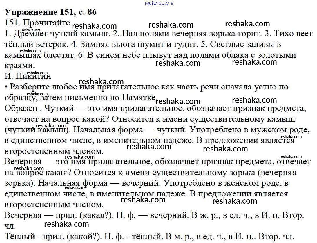 Решака - онлайн ответы Русский язык Канакина, Горецкий за 3 класс Учебник ФГОС 2013 - 151