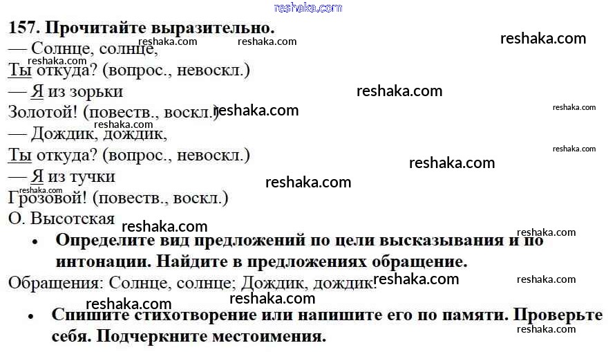 Решака - онлайн ответы Русский язык Канакина, Горецкий за 3 класс Учебник ФГОС 2013 - 157