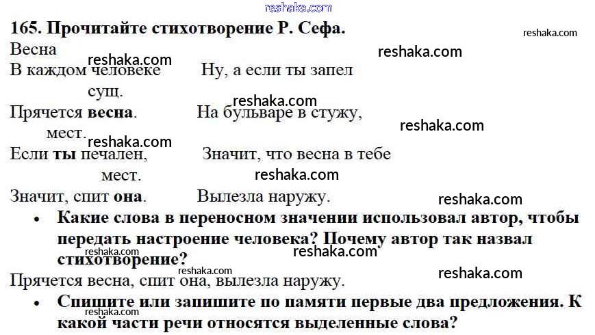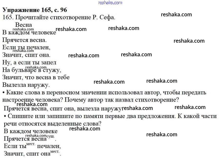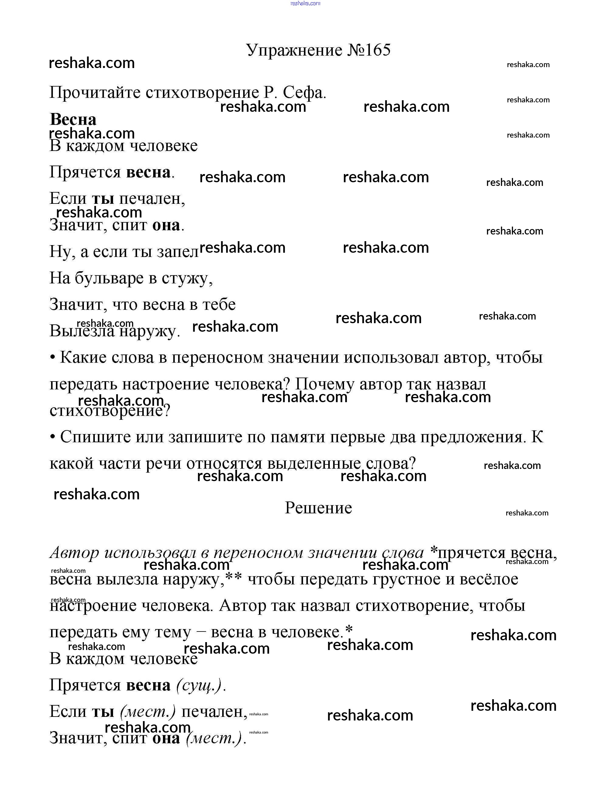 Решака - онлайн ответы Русский язык Канакина, Горецкий за 3 класс Учебник ФГОС 2013 - 165