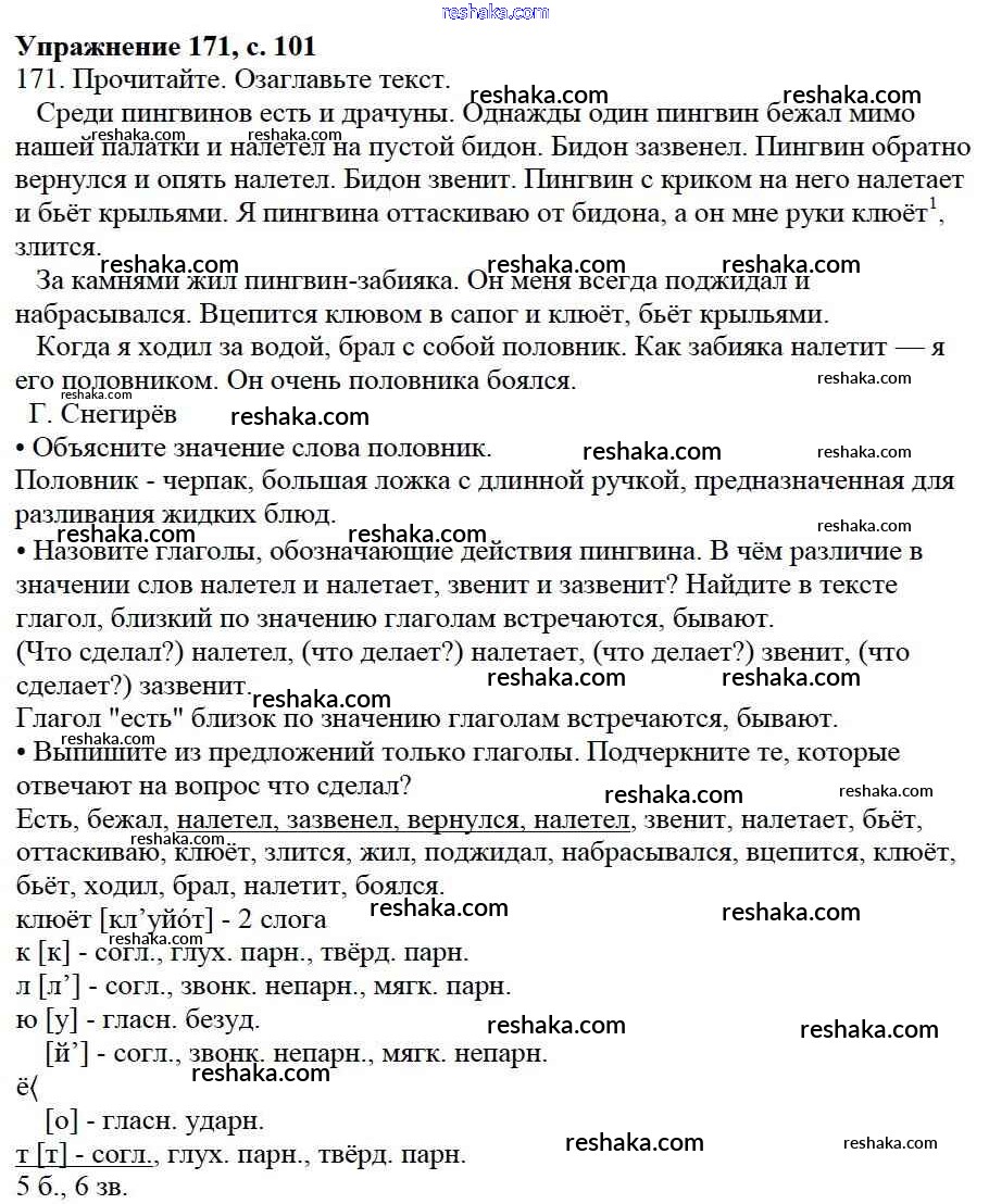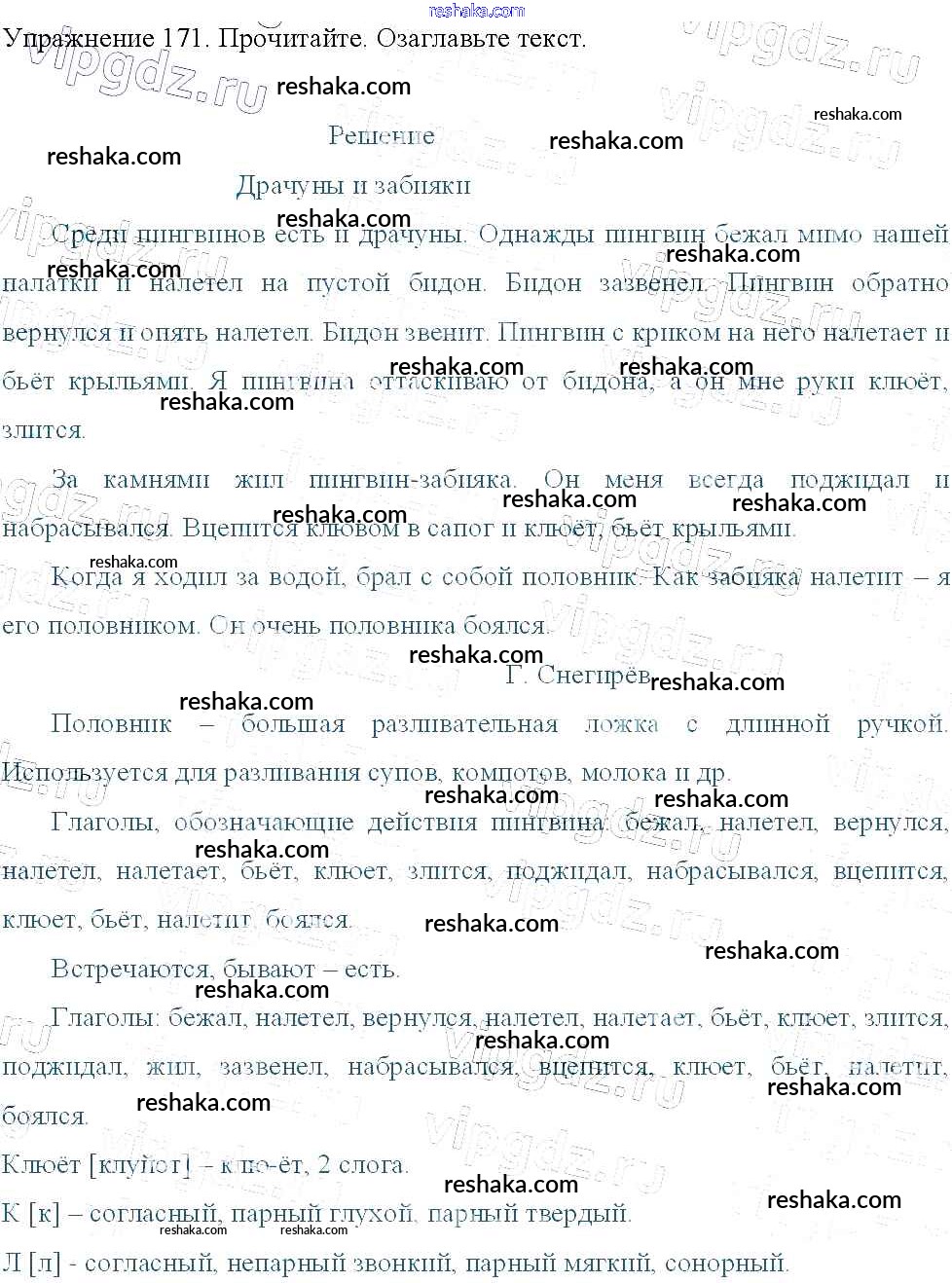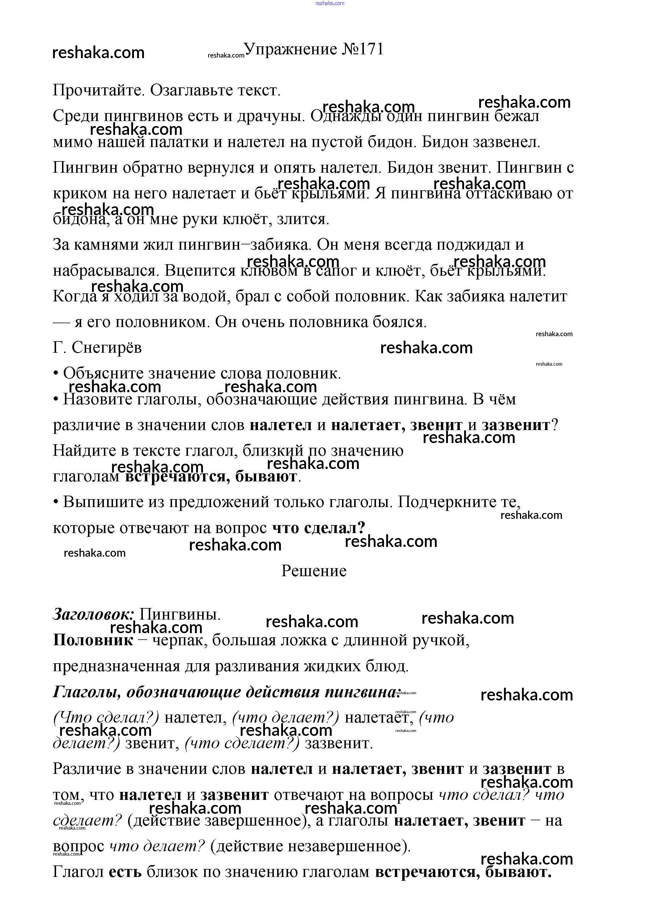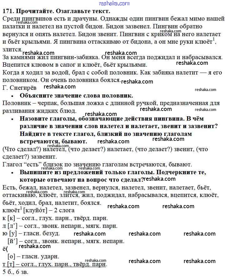 Решака - онлайн ответы Русский язык Канакина, Горецкий за 3 класс Учебник ФГОС 2013 - 171