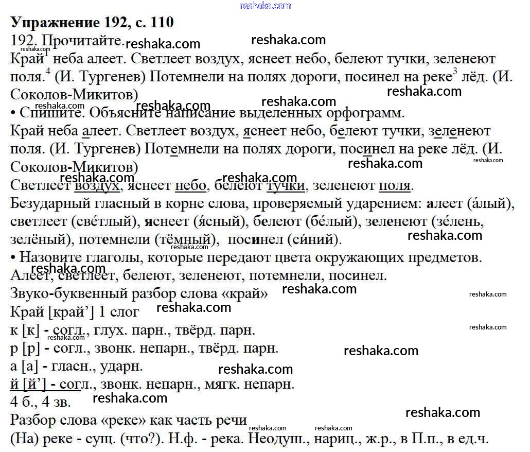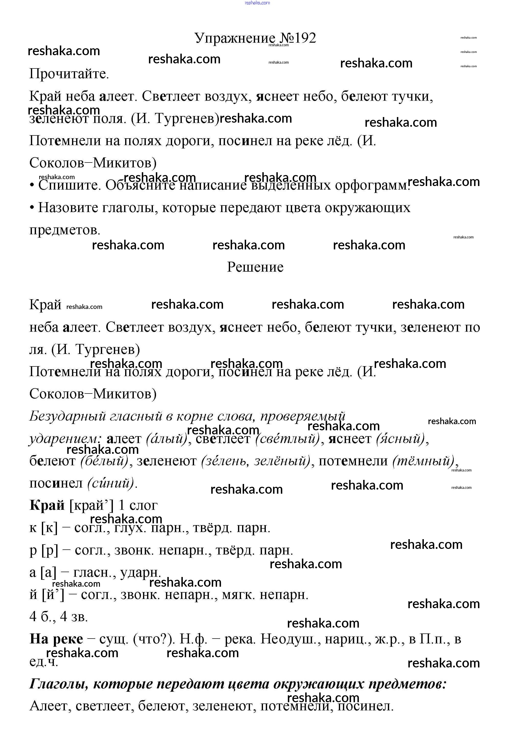 Решака - онлайн ответы Русский язык Канакина, Горецкий за 3 класс Учебник ФГОС 2013 - 192