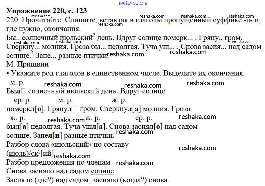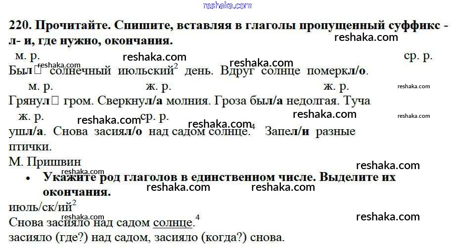 Решака - онлайн ответы Русский язык Канакина, Горецкий за 3 класс Учебник ФГОС 2013 - 220