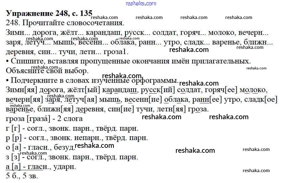 Решака - онлайн ответы Русский язык Канакина, Горецкий за 3 класс Учебник ФГОС 2013 - 248