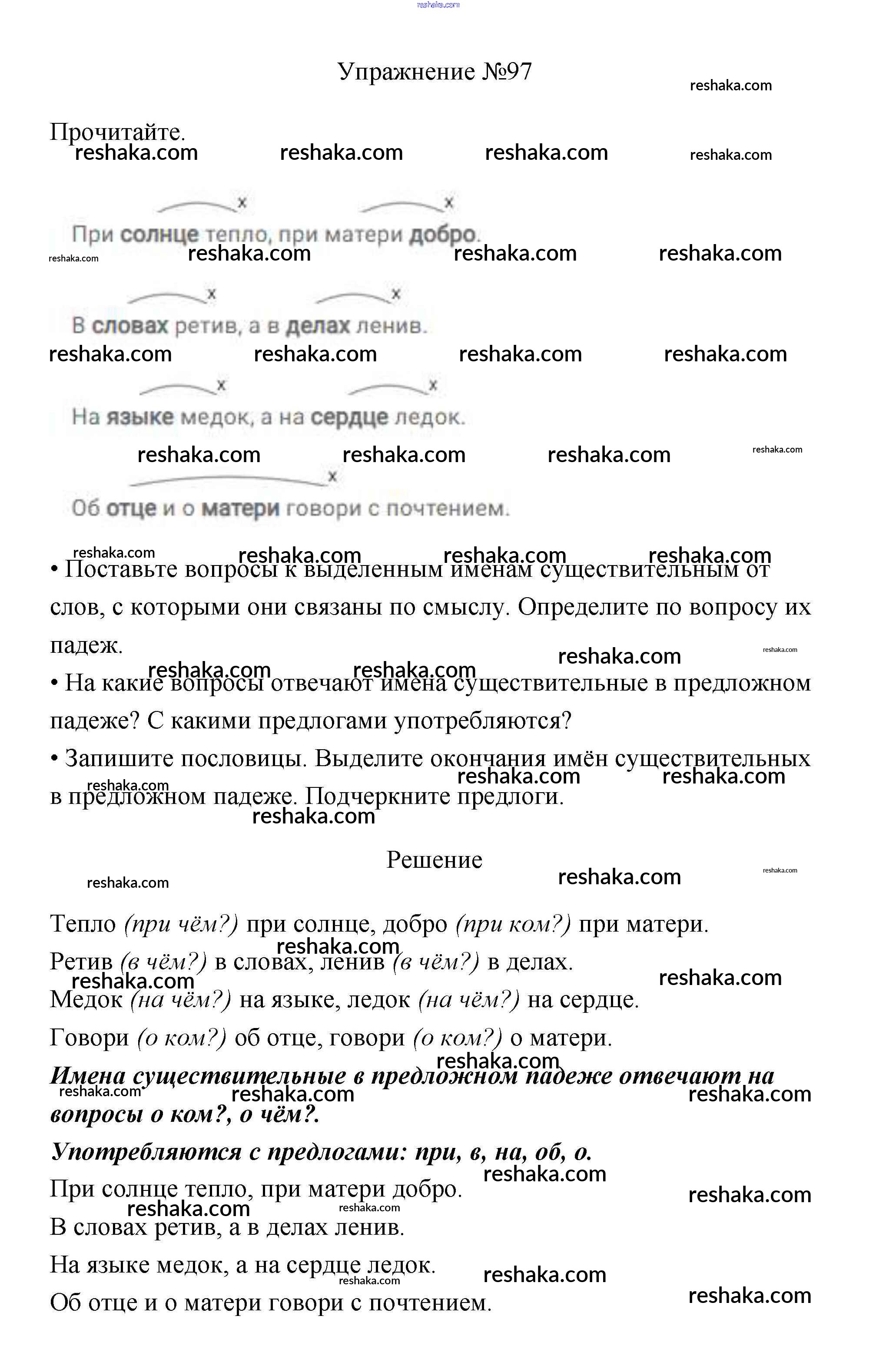 Решака - онлайн ответы Русский язык Канакина, Горецкий за 3 класс Учебник ФГОС 2013 - 97