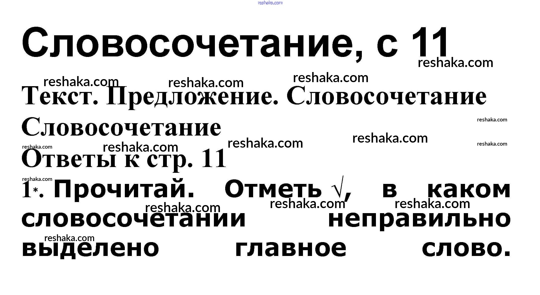 Решака - онлайн ответы Русский язык Канакина, Щеголева за 3 класс Проверочные работы ФГОС 2018 - Словосочетание стр. 11