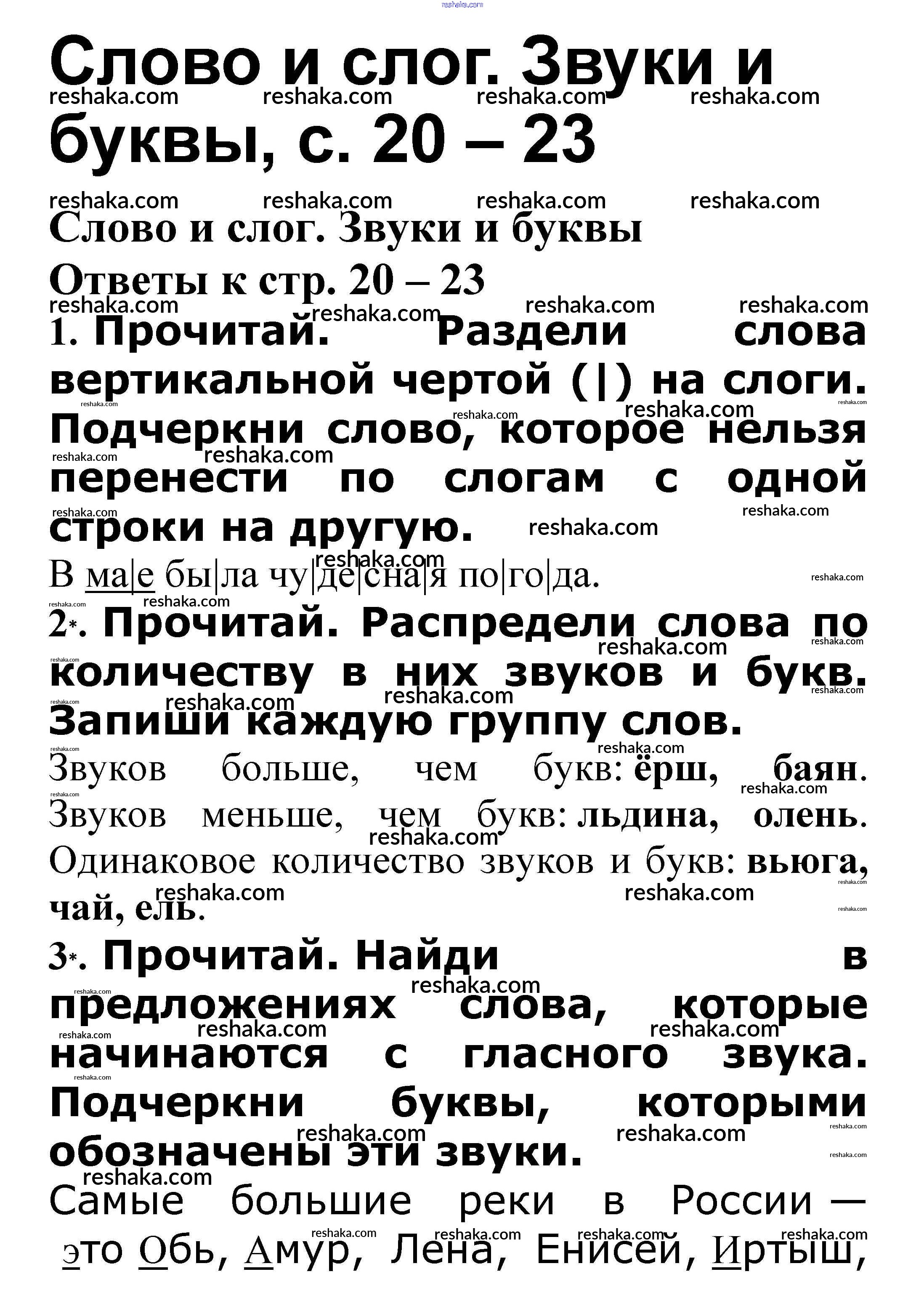 Решака - онлайн ответы Русский язык Канакина, Щеголева за 3 класс Проверочные работы ФГОС 2018 - Слово и слог. Звуки и буквы стр. 20 – 23