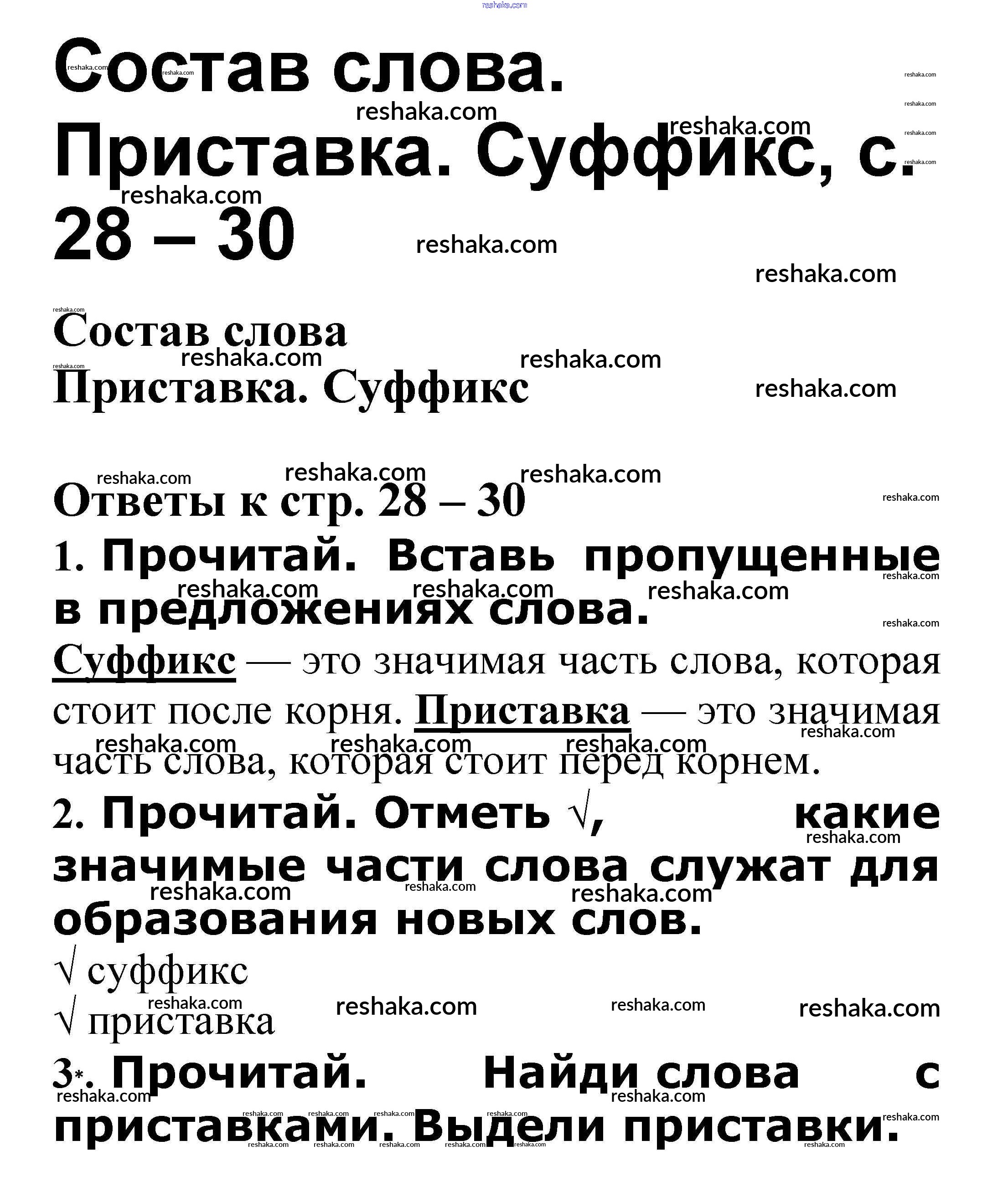 Решака - онлайн ответы Русский язык Канакина, Щеголева за 3 класс Проверочные работы ФГОС 2018 - Приставка. Суффикс стр. 28 – 30