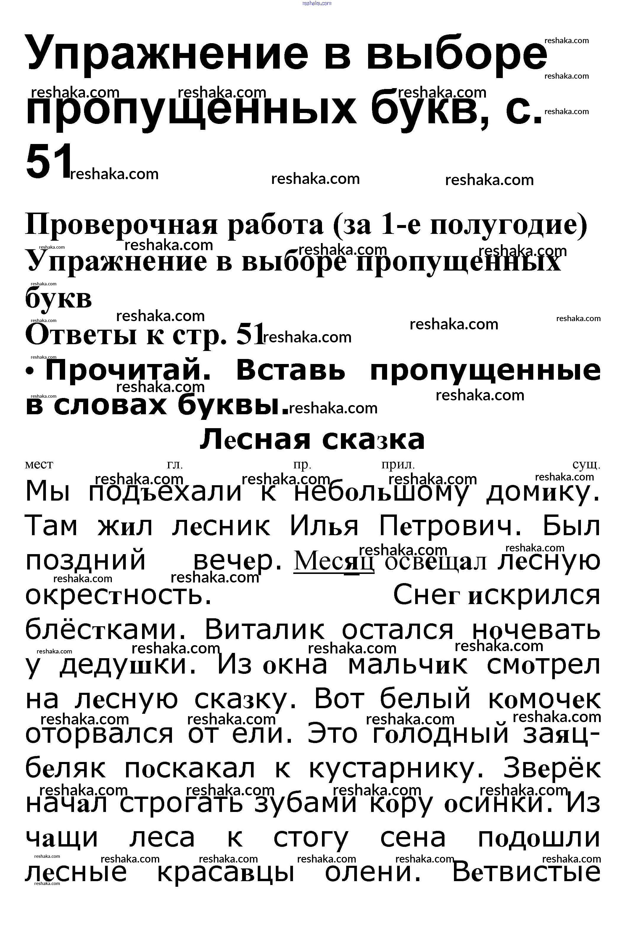 Решака - онлайн ответы Русский язык Канакина, Щеголева за 3 класс Проверочные работы ФГОС 2018 - Упражнение в выборе пропущенных букв стр. 51